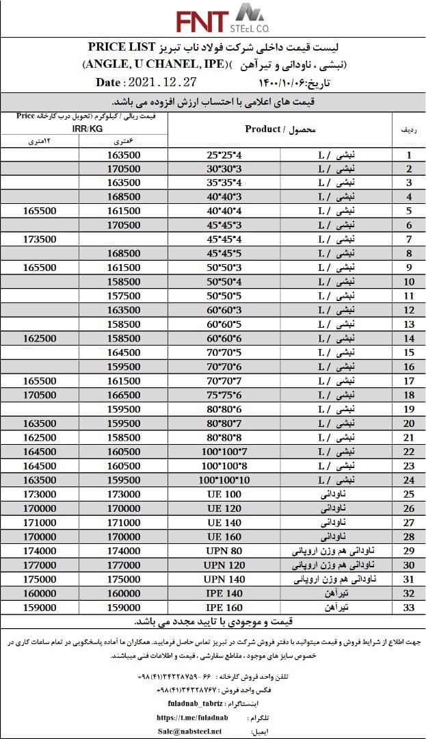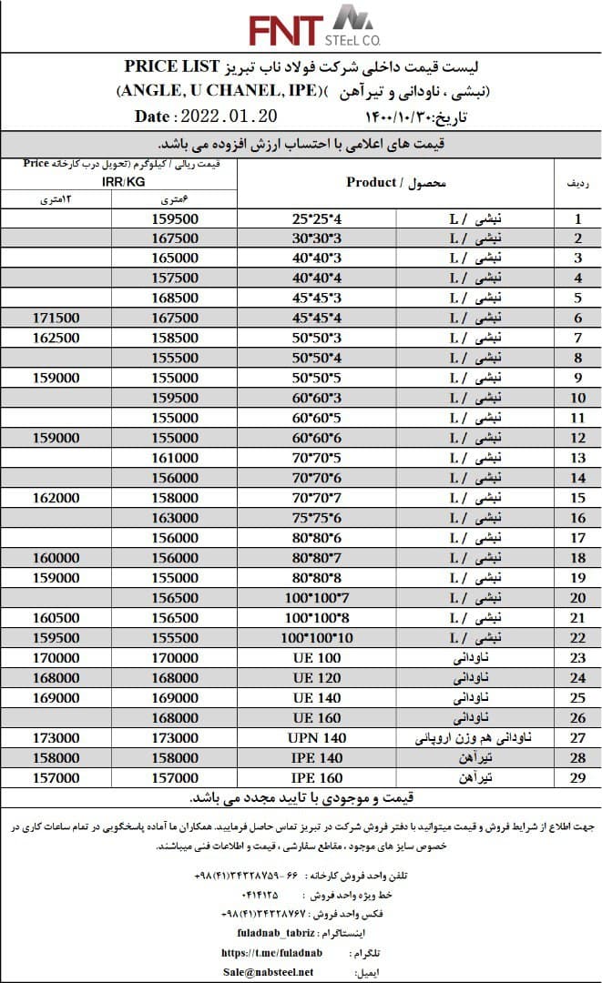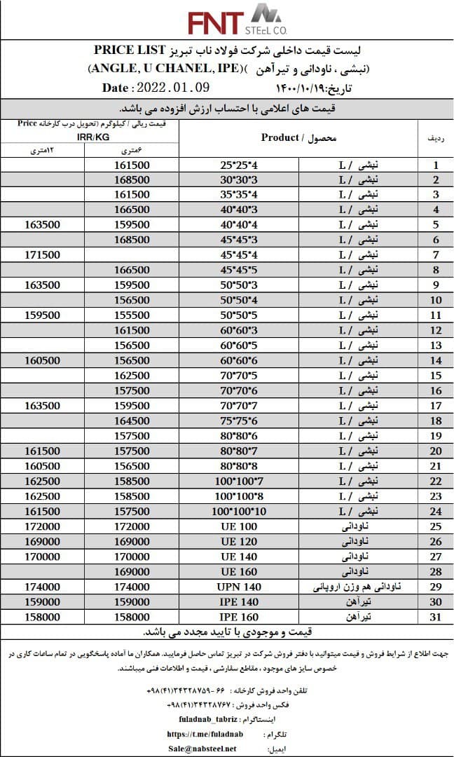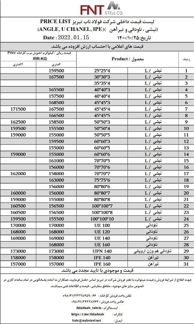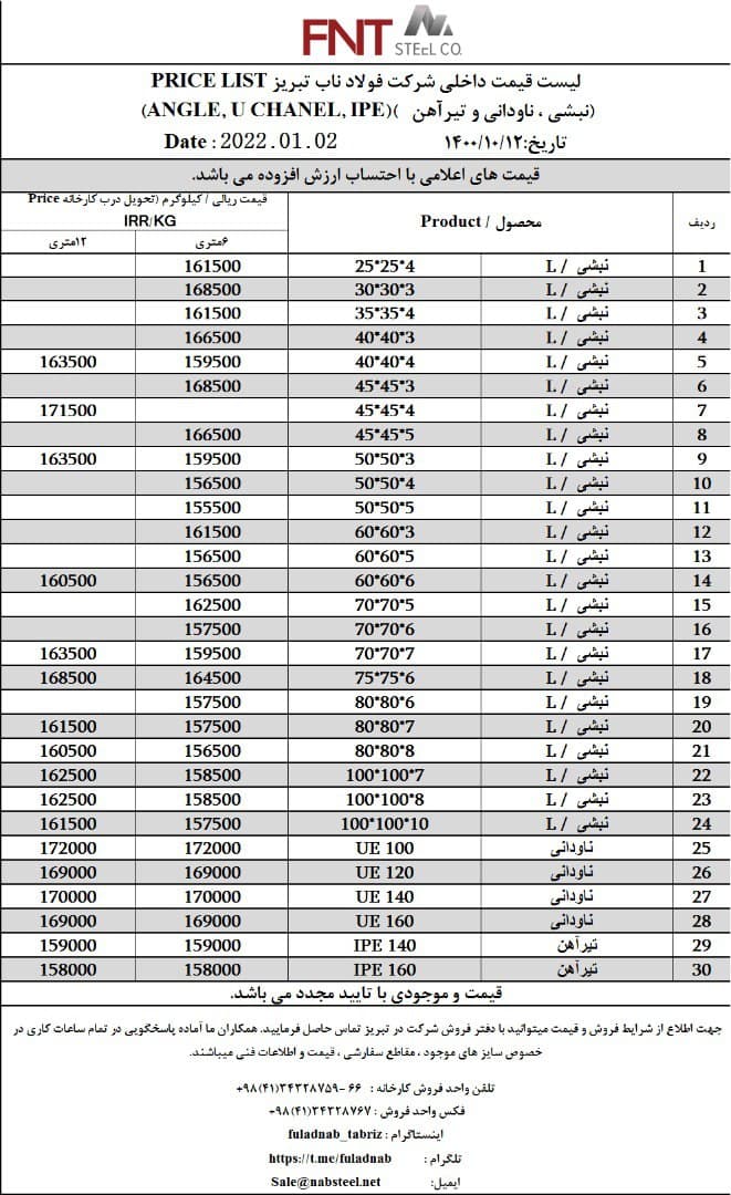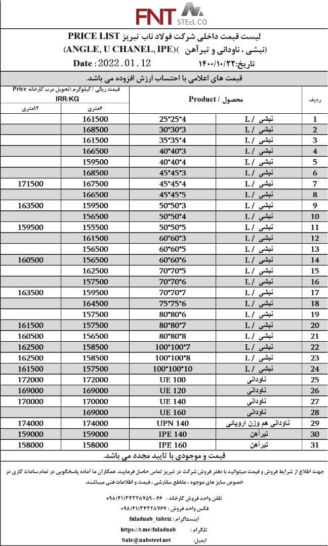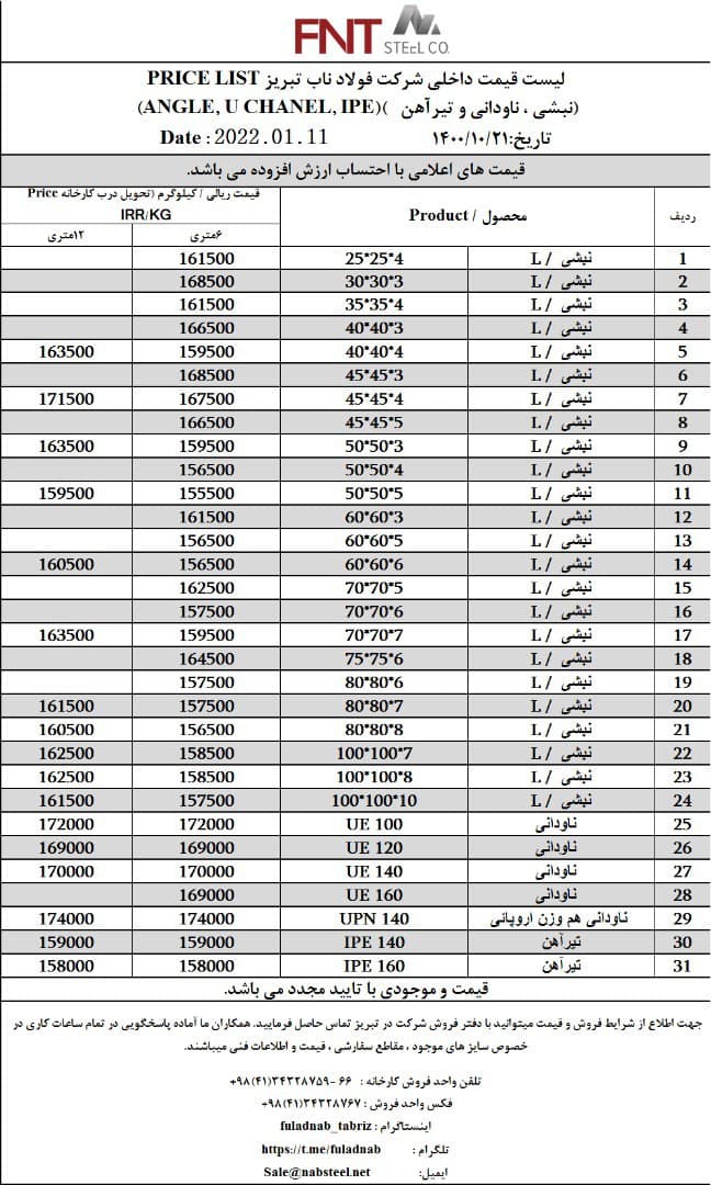 💢شرکت #فولاد_ناب_تبریز ✅تولیدکننده انواع نبشی ناودانی و تیرآهن #فولاد_ناب_کیفیت_ناب ☎️04134328759-66 📱09018013876 🌐www.nabsteel.com 🆔 @fuladnab