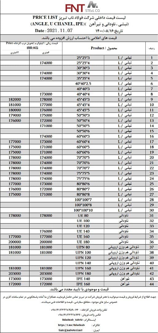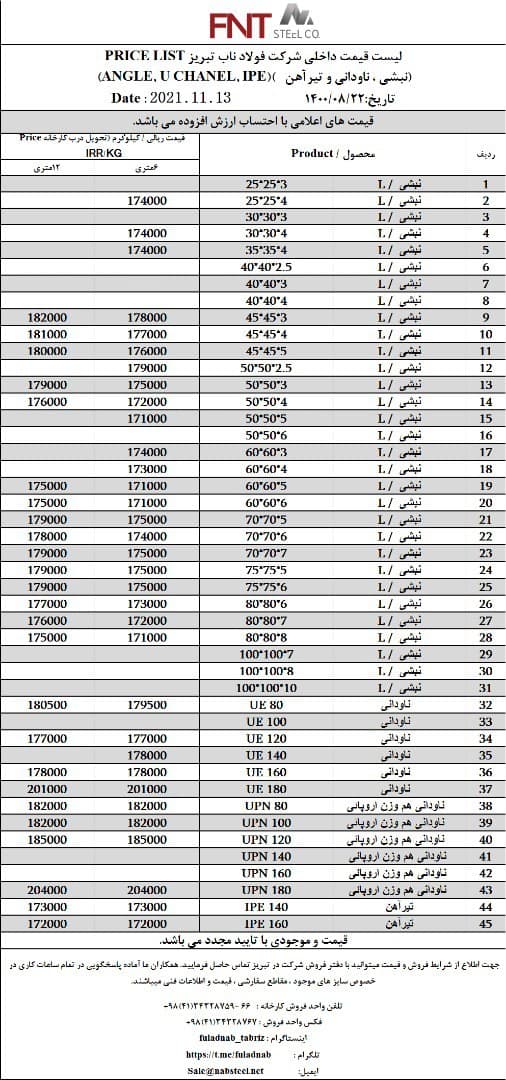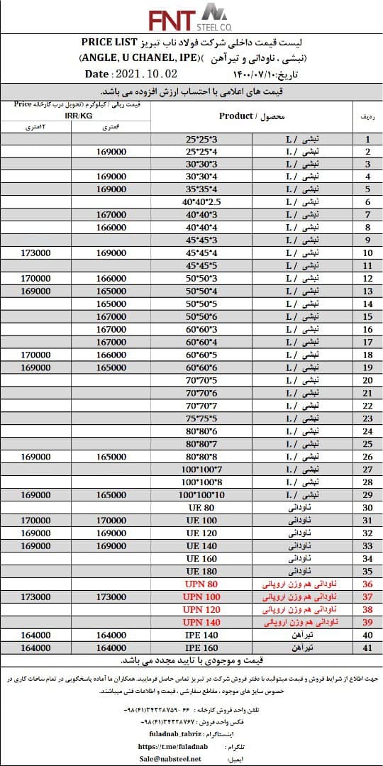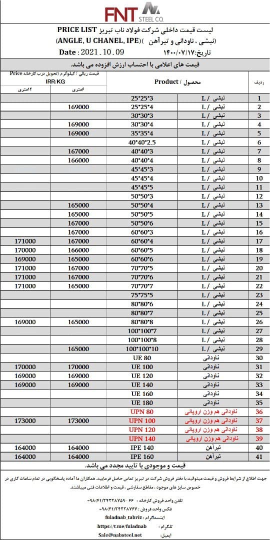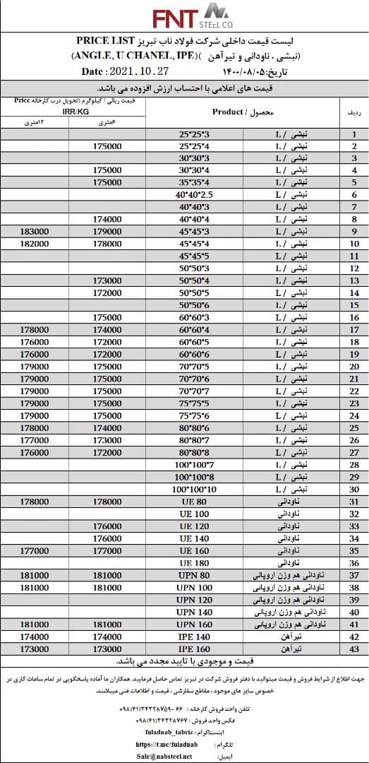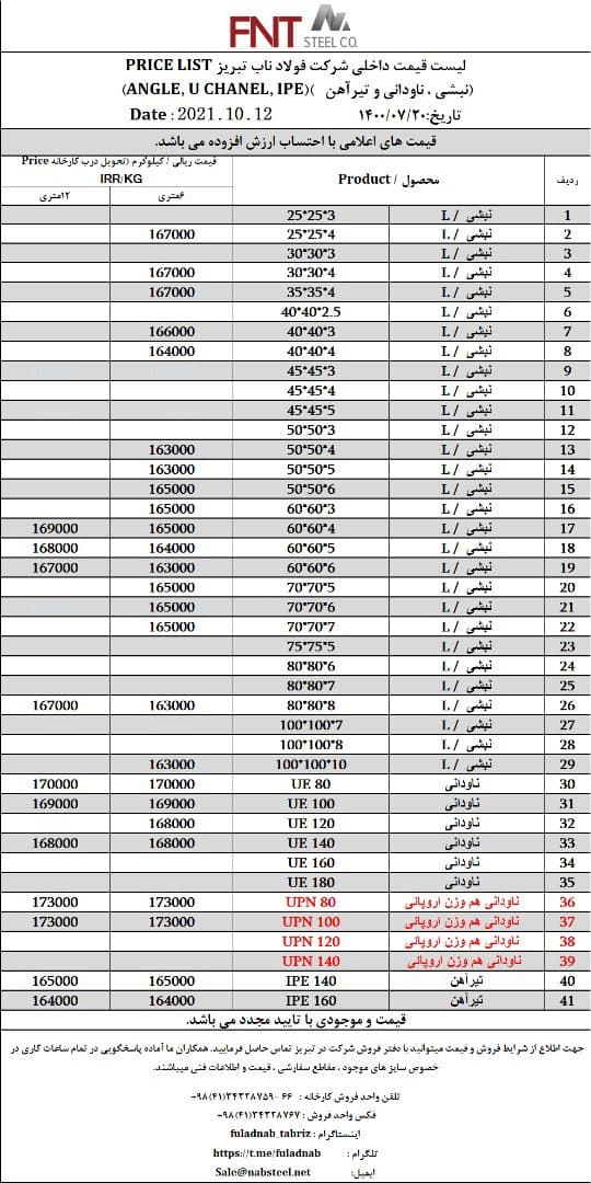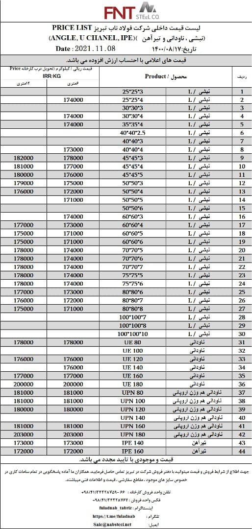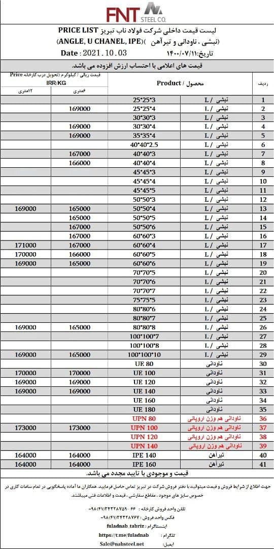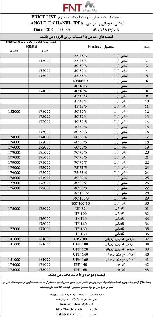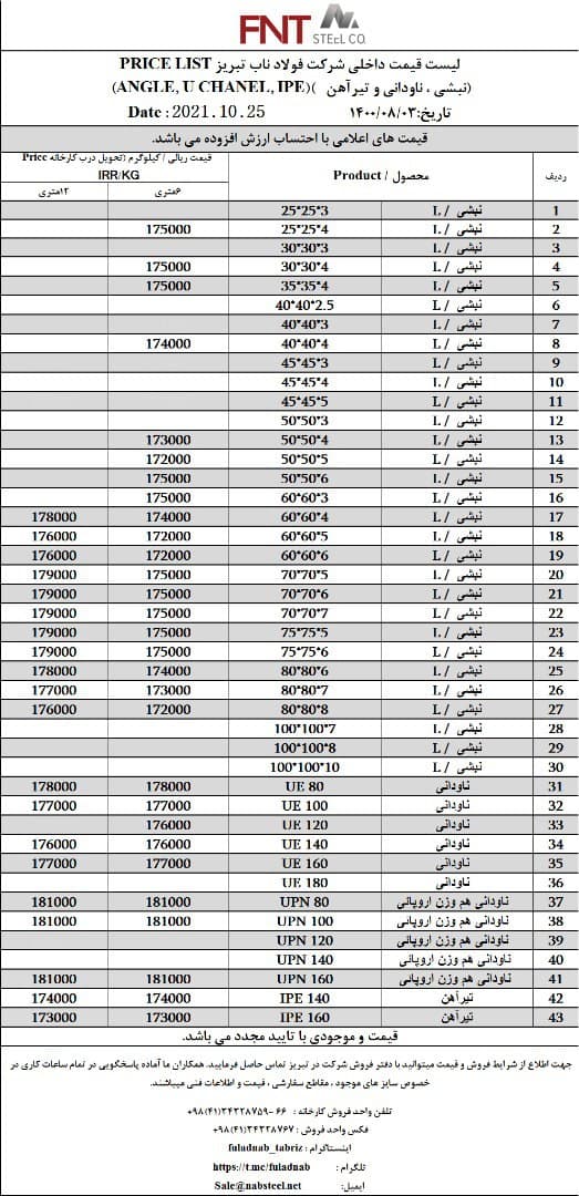 شرکت #فولاد_ناب_تبریز تولیدکننده انواع نبشی ناودانی و تیرآهن #فولاد_ناب_کیفیت_ناب ☎️04134328759-66 📱09018013876 🌐www.nabsteel.com 🆔 @fuladnab https://foolad24 ...