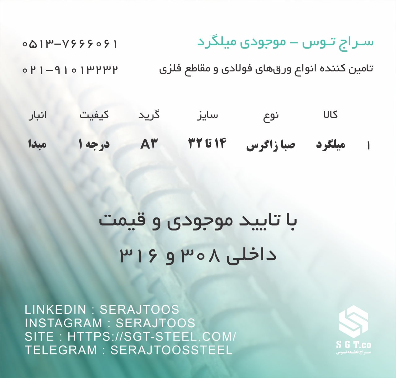 اعلام موجودی میلگرد آجدار