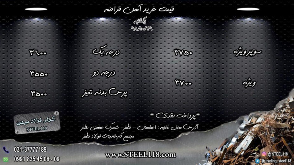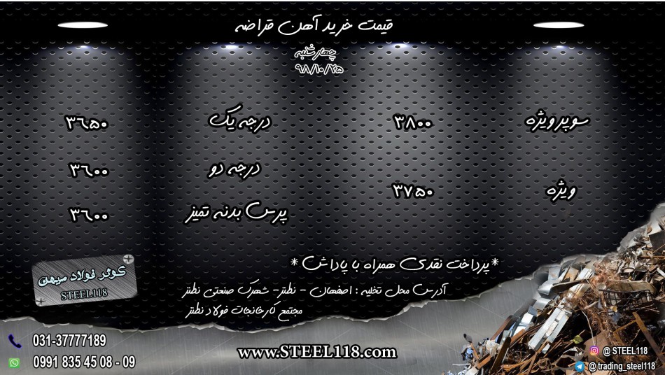 شرکت کوثر فولاد میهن STEEL118 تهیه تامین صادرات و واردات مواد اولیه و محصولات فولادی قیمت خرید #آهن_قراضه یکشنبه ۹۸/۱۰/۲۹ ...