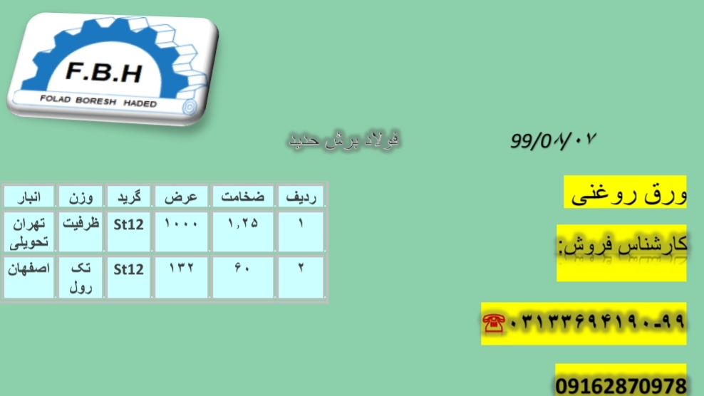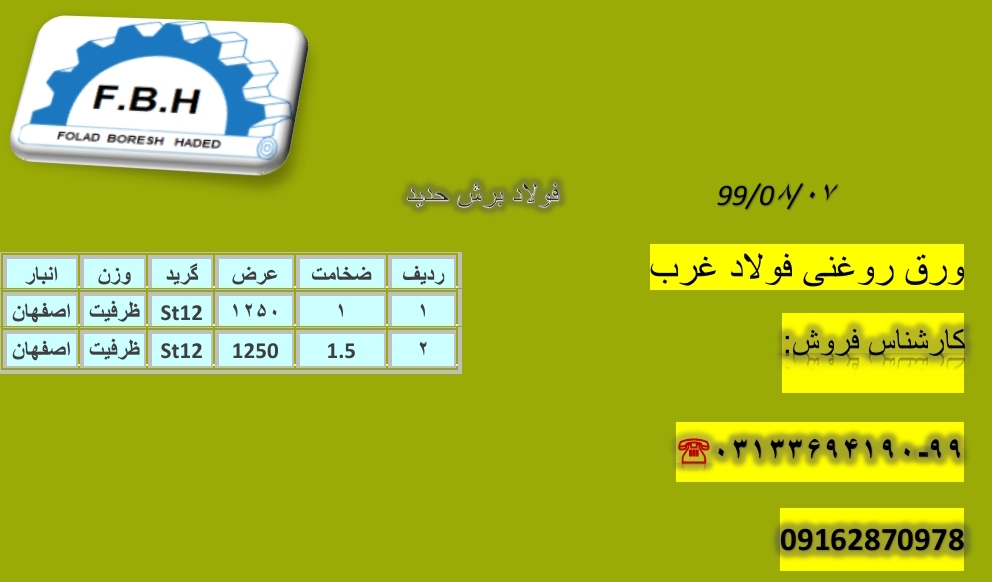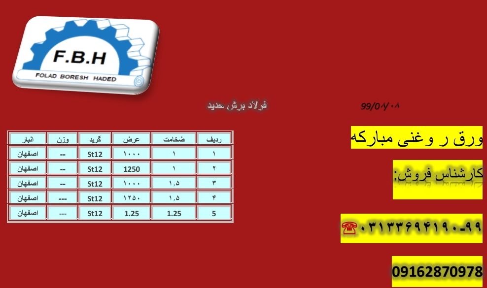 فولاد برش حسابداری, [06.01.21 01:53] [Forwarded from فولاد برش حدید 99-03133694190 و 39-33720034] فروش ورق روغنی فولاد 1*1250————---st12 https://t.me/fo ...