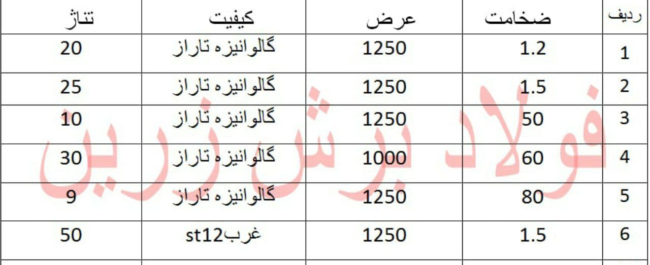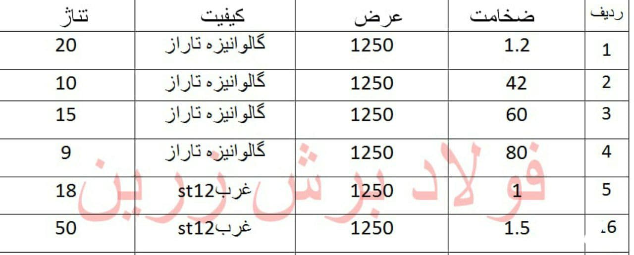 ✅موجودی ورق روغنی 1.2...............1250................st12 1..................1250.................st12 60................1000.................st12 فولاد غرب ...