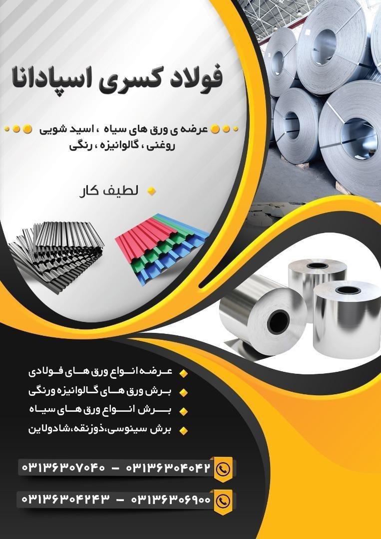 #فولادکسری اسپادانا عرضه انواع ورق های فولادی(سیاهاسیدشوییروغنیگالوانیزهرنگی) برش ورق های گالوانیزه و رنگی برش انواع ورق های سیاه برش سینوسیذوزنقهشادولاین ...