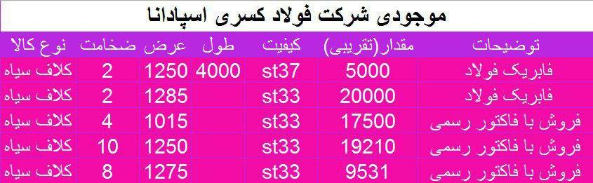 60*1250 st12 روغنی فولاد غرب. موجودی ظرفیت شماره های تماس فولادکسری اسپادانا 03136940000