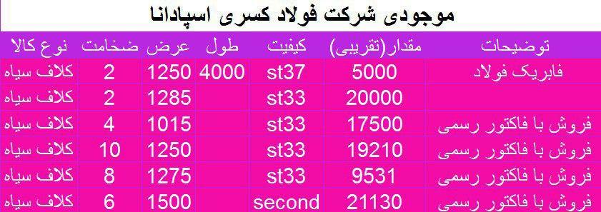 ۴۸*۱۰۰۰ وزن ۱۵۰۰۰ ۶۰*۱۲۳۰ وزن ۳۵۰۰ گالوانیزه فولاد درجه ۲ با فاکتور رسمی شماره های تماس فولادکسری اسپادانا 03136940000