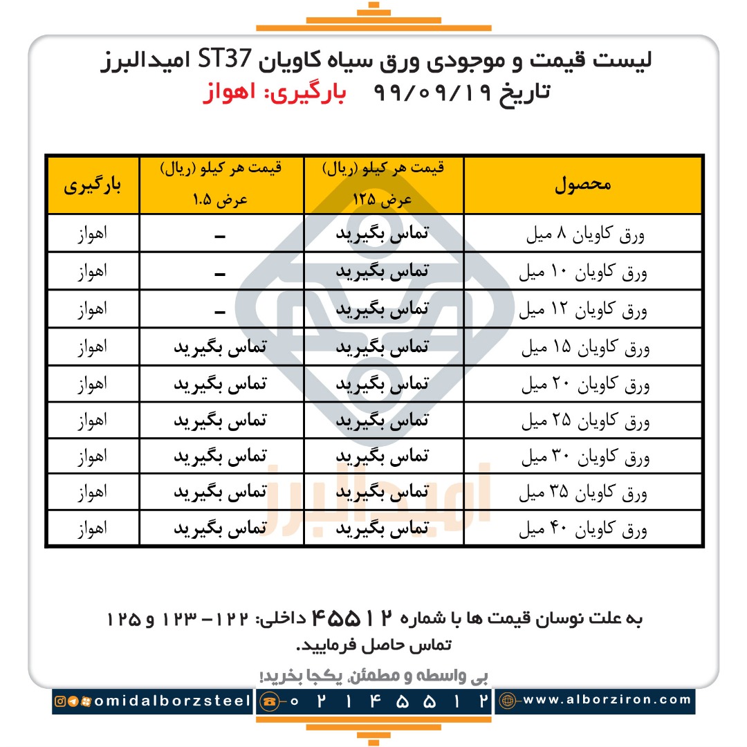 قیمت #ناودانی #نبشی #تسمه بصورت روزانه از وب سایت و کانال تلگرام امیدالبرز لیست قیمت انواع آهن آلات را دانلود کنید. آدرس کانال تلگرام و اینستاگرام: @omidalbo ...