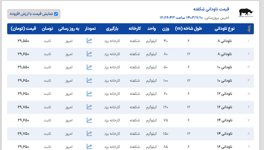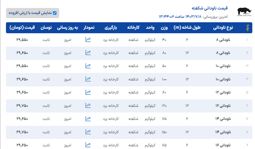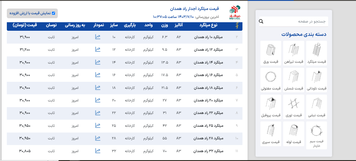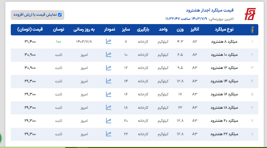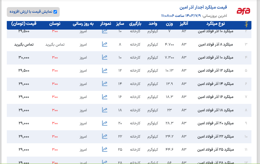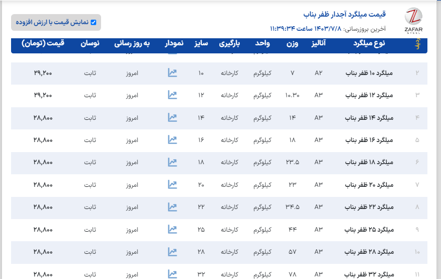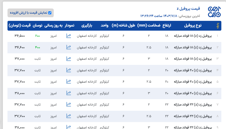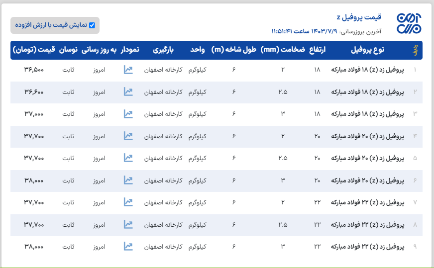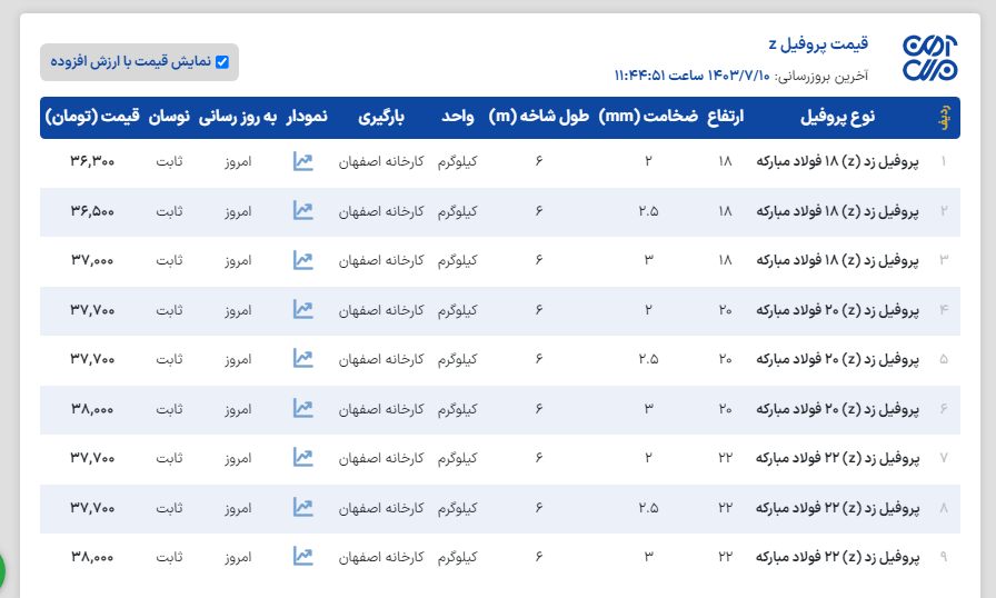 اعلام موجودی پروفیل z (زد) آهن ملل