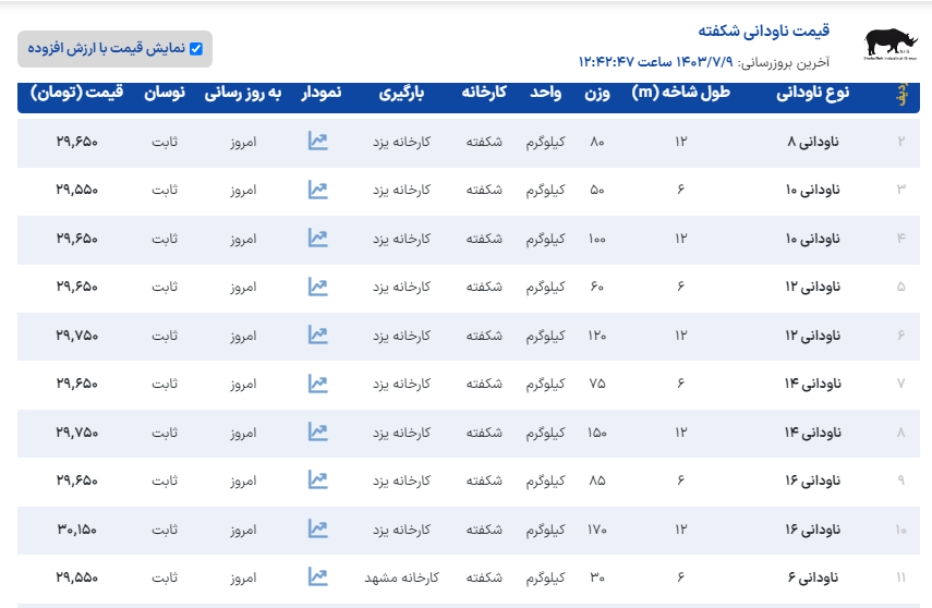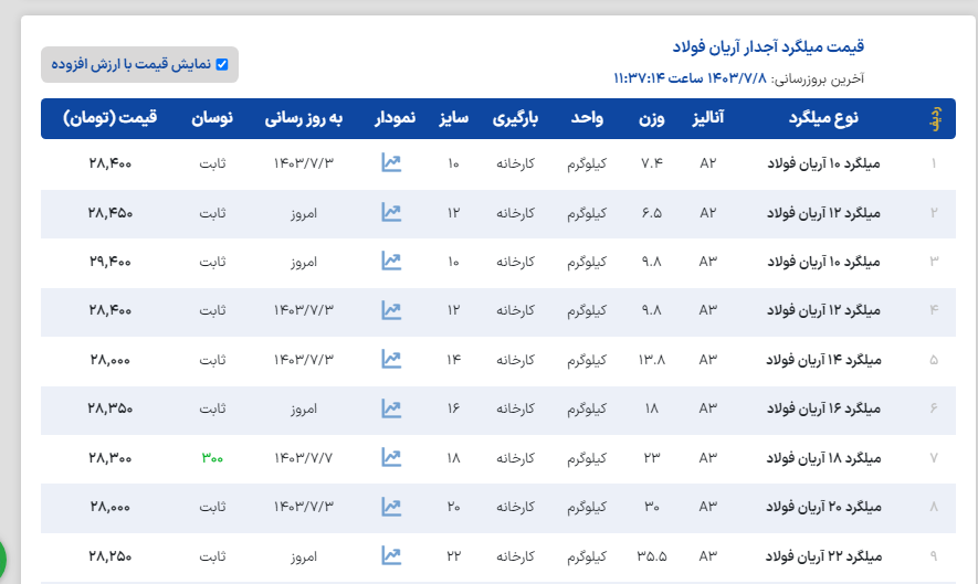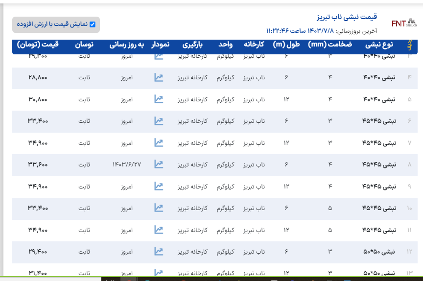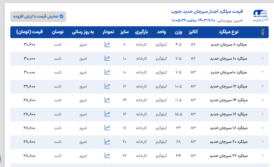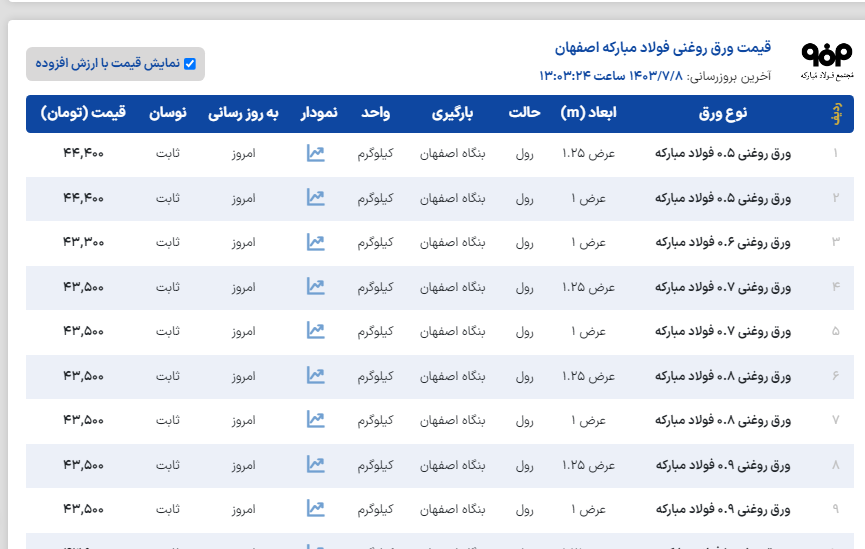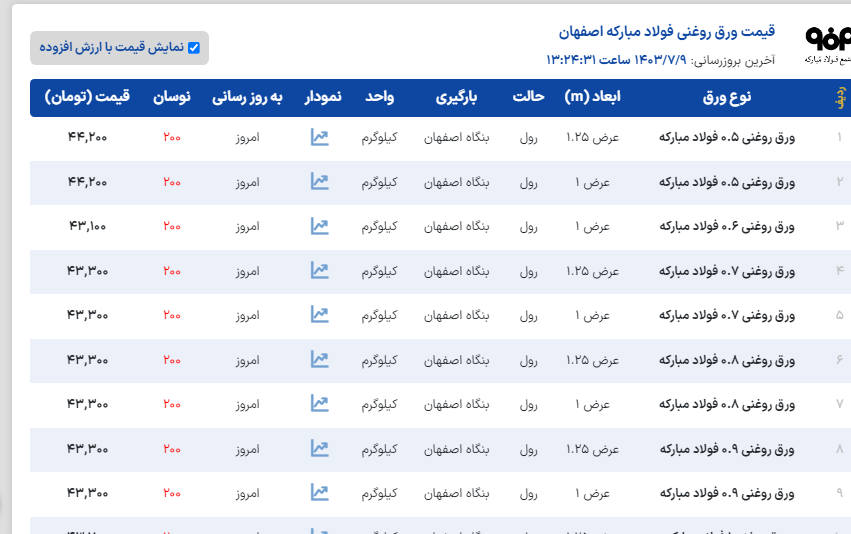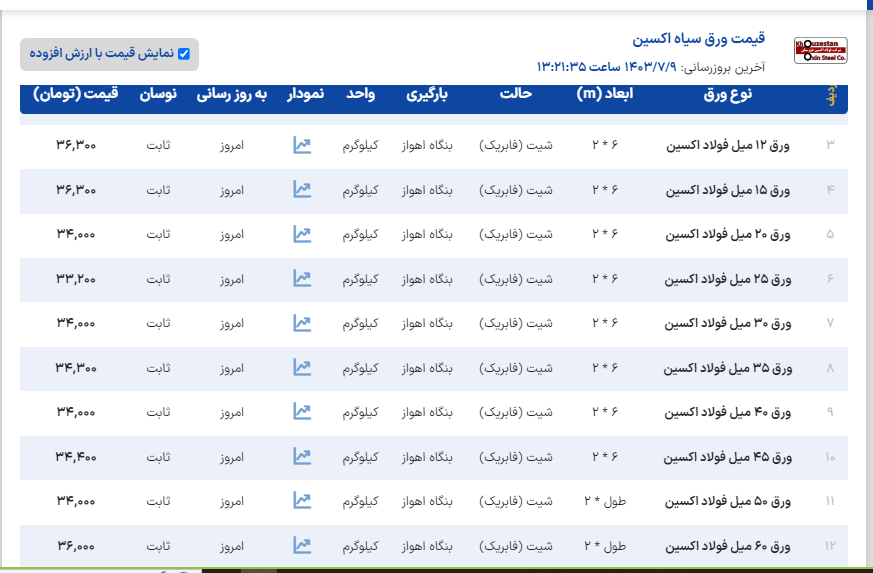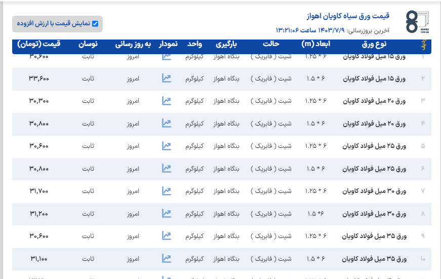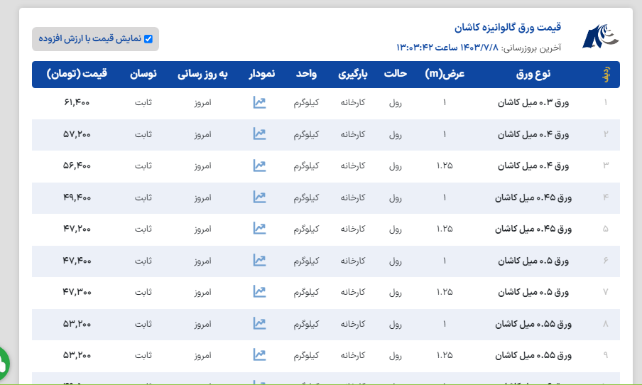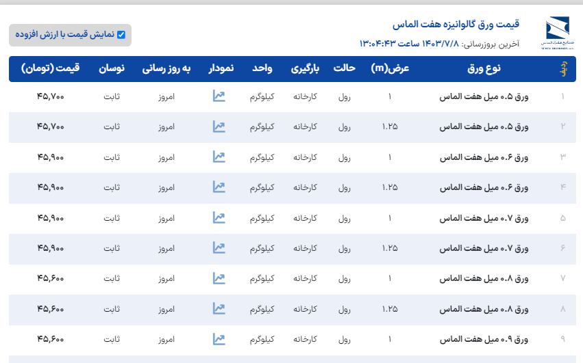 اعلام موجودی ورق گالوانیزه آهن ملل