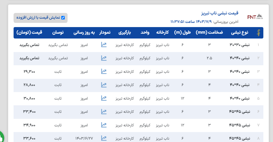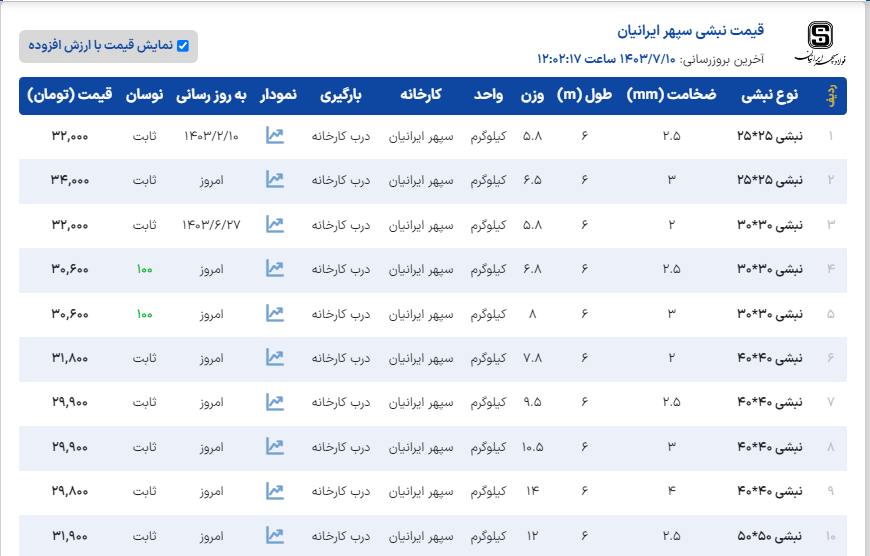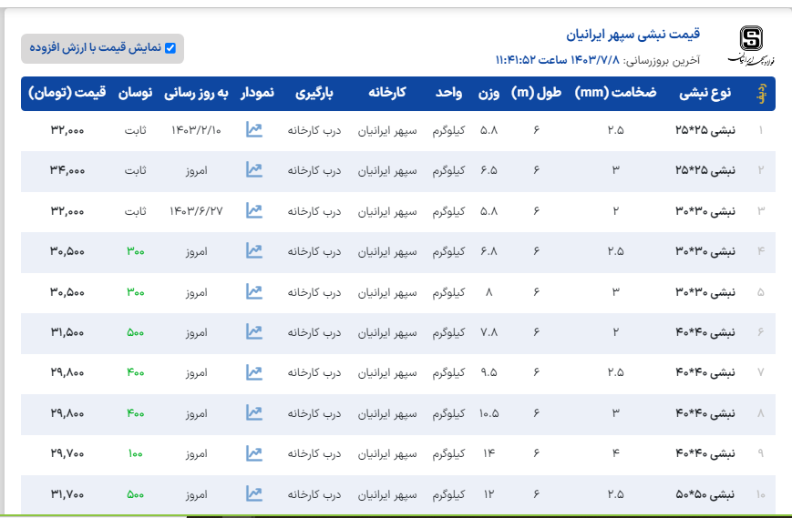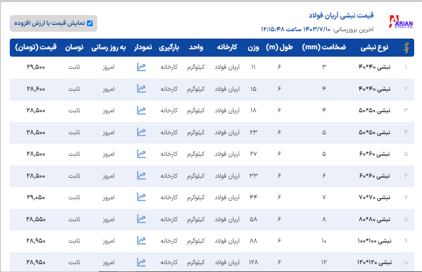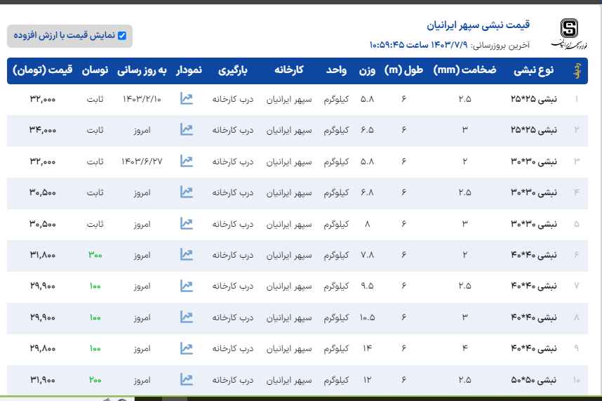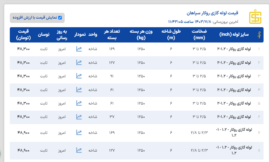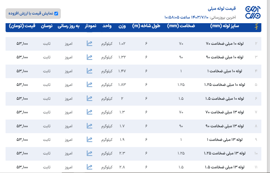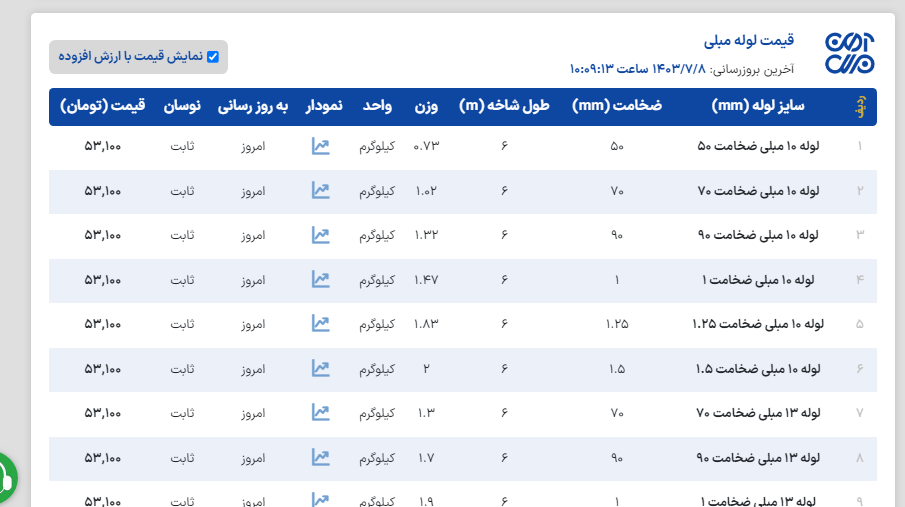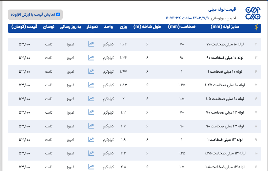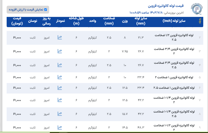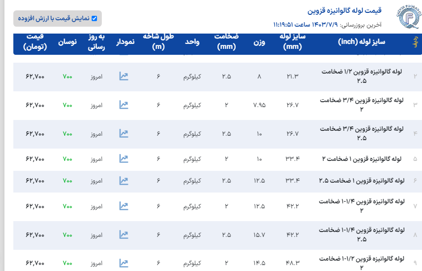 اعلام موجودی لوله گالوانیزه آهن ملل