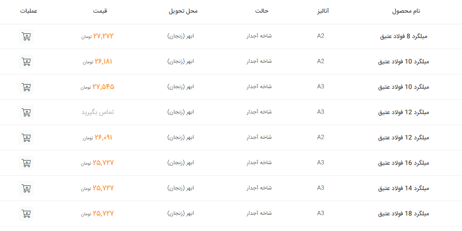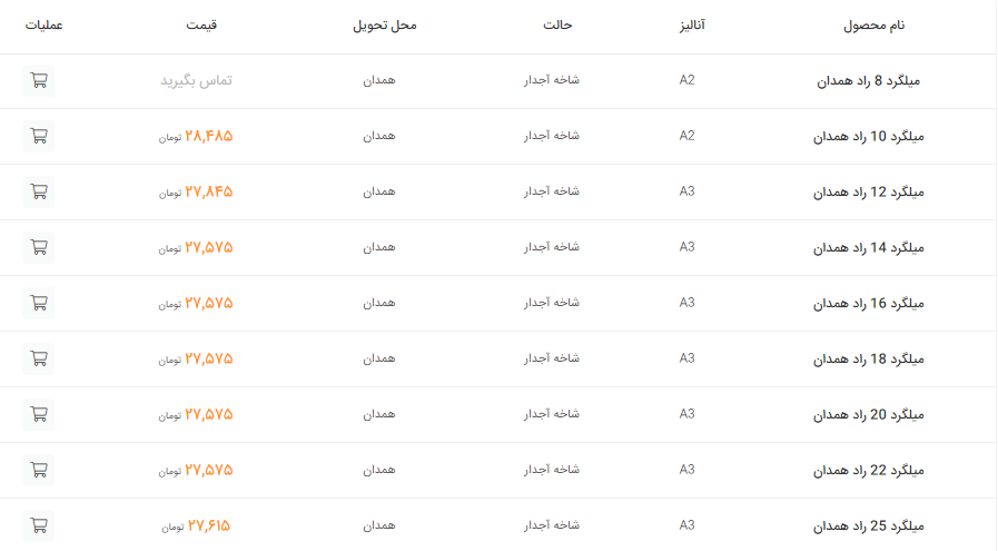 جهت مشاهده قیمت محصولات کلیک کنید.درخواستهای خرید اسپادان آهن آیریک