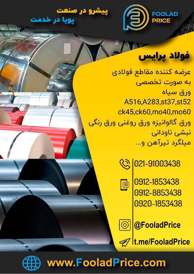 💢بازرگانی فولاد #پرایس 🔹عرضه تخصصی انواع ورق سیاه ،روغنی، گالوانیزه و رنگی ،میلگرد،تیرآهن، نبشی ،ناودانی، پلیت،بولت 🔸ارائه خدمات برش گیوتین،cnc، لیزری ...