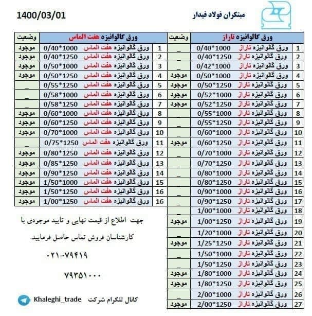 #بازرگانی_فولاد_خالقی ورق گالوانیزه هفت الماس موجود در کارخانه ۰.۴۰*۱۰۰۰ ۰.۴۰*۱۲۵۰ ۰.۵۰*۱۲۵۰ ۰.۶۰*۱۰۰۰ ۰.۶۰*۱۲۵۰ ۰.۹۰*۱۲۵۰ ۱.۵*۱۰۰۰ ۱.۵*۱۲۵۰ موجودی گالوانیزه ...