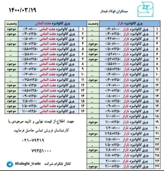 #بازرگانی_فولاد_خالقی ✅تامین کننده انواع ورق های گالوانیزه 📌کارشناس فروش: مهتا خلعتبری داخلی ۵۰۰-۵۰۱ #ورق_گالوانیزه شماره های تماس:👇🏼 ☎️ ۰۲۱-۷۹۳۵۱۰۰۰ ☎️ ۰۹۰۲۱ ...