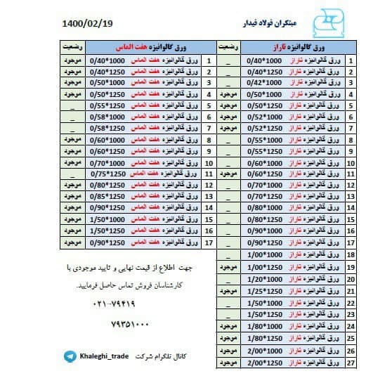 #بازرگانی_فولاد_خالقی ✅تامین کننده انواع ورق های گالوانیزه 📌کارشناس فروش:مینا محمدی داخلی 500-501 #ورق_گالوانیزه شماره های تماس:👇🏼 ☎️ 021-79351000 ☎️ 0938-27 ...