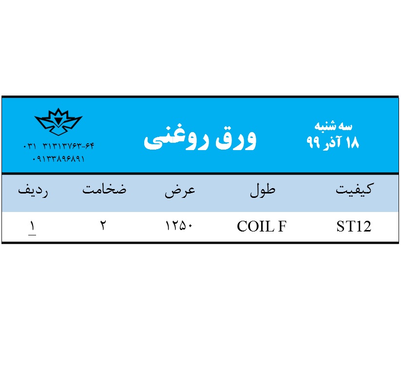 موجودی ورق روغنی 1.5 1250 fq 2 1250 st12 foolad شماره تماس شرکت مهربد تدبیر زرین 03131313763 03131313764 09133896891 https://t.me/arvinstl