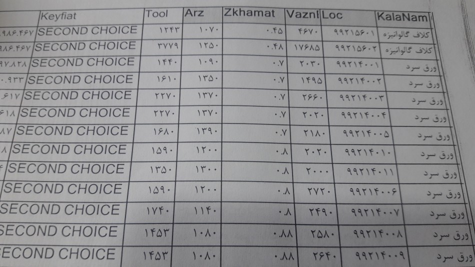 صورت بار ورق گالوانیزه و رنگی