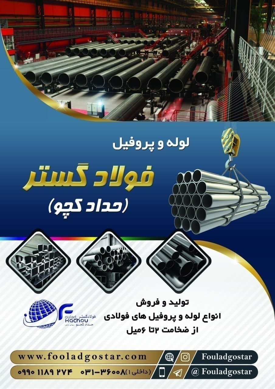 """شرکت تولیدی_فولاد_گستر_حداد_کچو تولید و فروش انواع لوله و پروفیل های فولادی از ضخامت 2 تا 6 میل 🔸شماره تماس واحد فروش: 0990 1189 274 ☎️031-36008"""