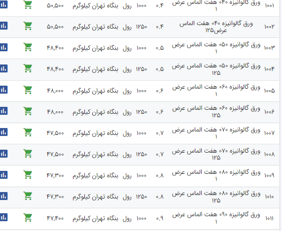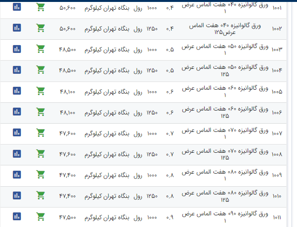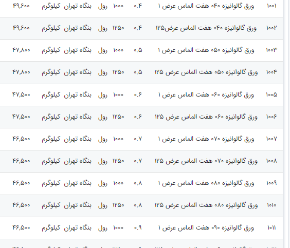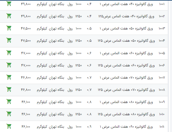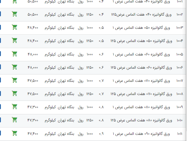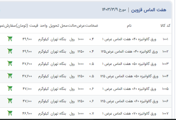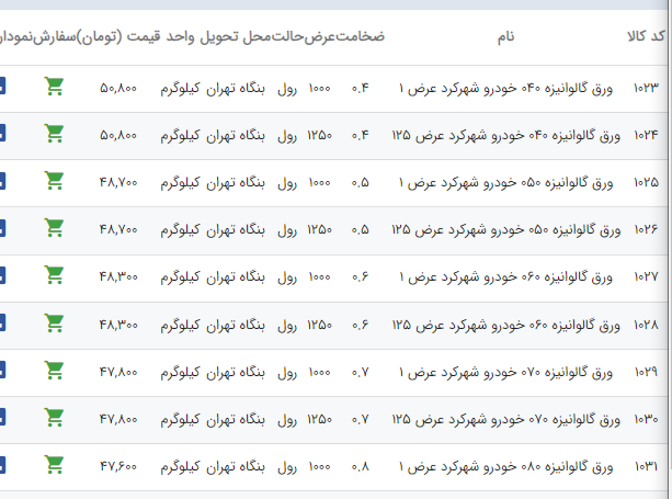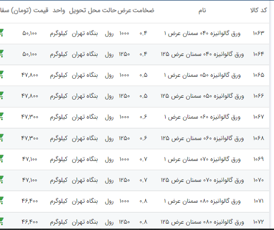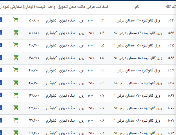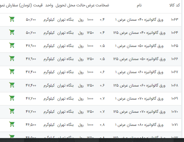 اعلام موجودی فولاد کبیر ورق گالوانیزه سمنان
