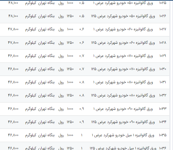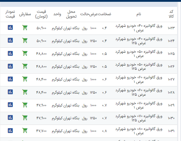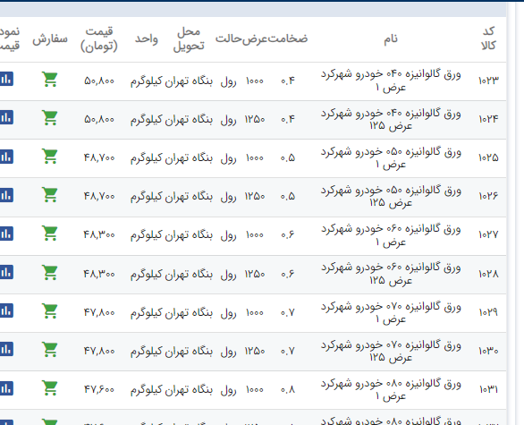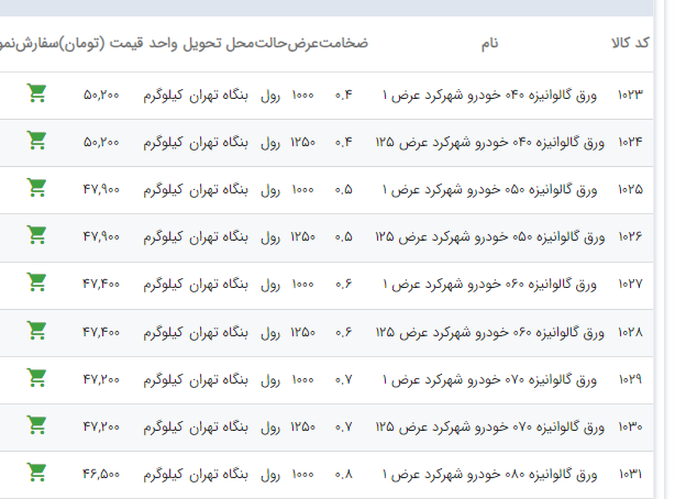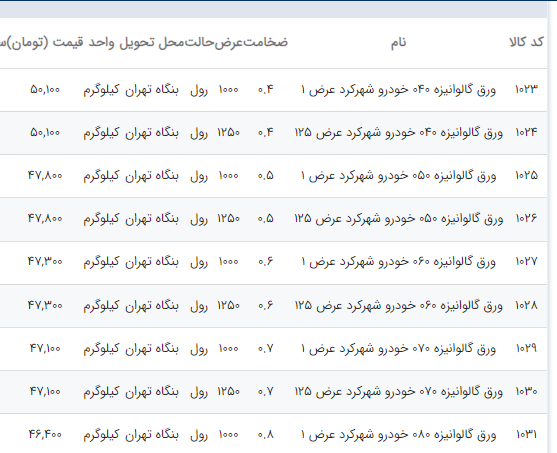 اعلام موجودی فولاد کبیر ورق گالوانیزه خودرو شهرکرد