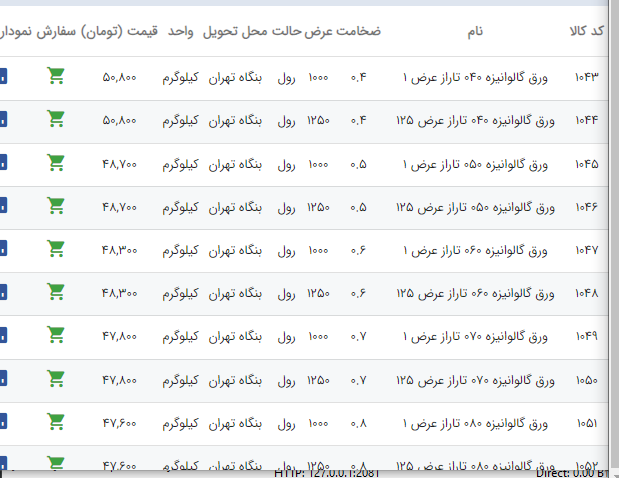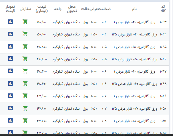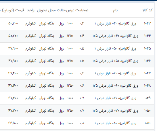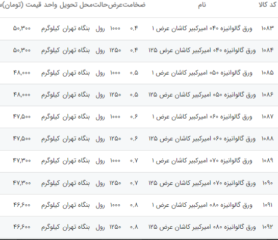 اعلام موجودی فولاد کبیر ورق گالوانیزه کاشان