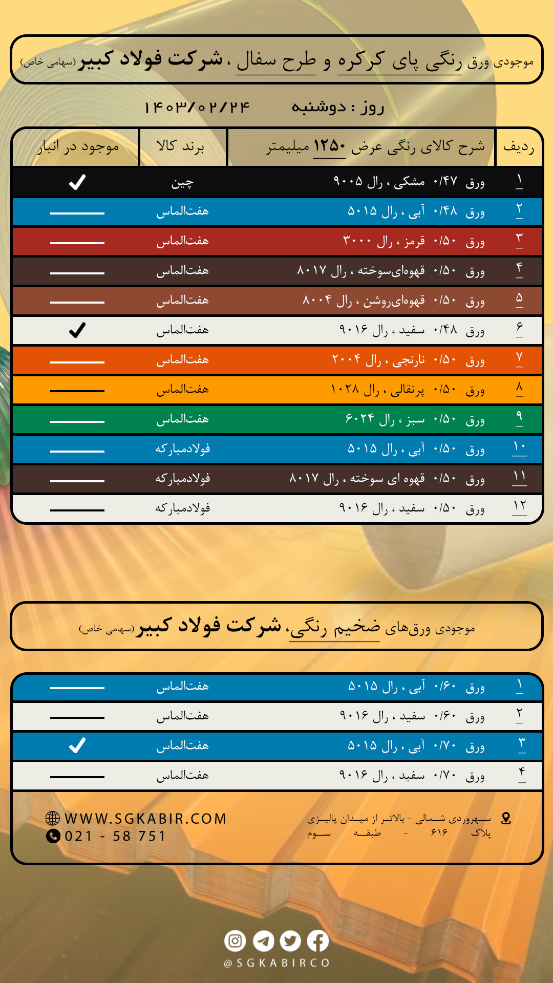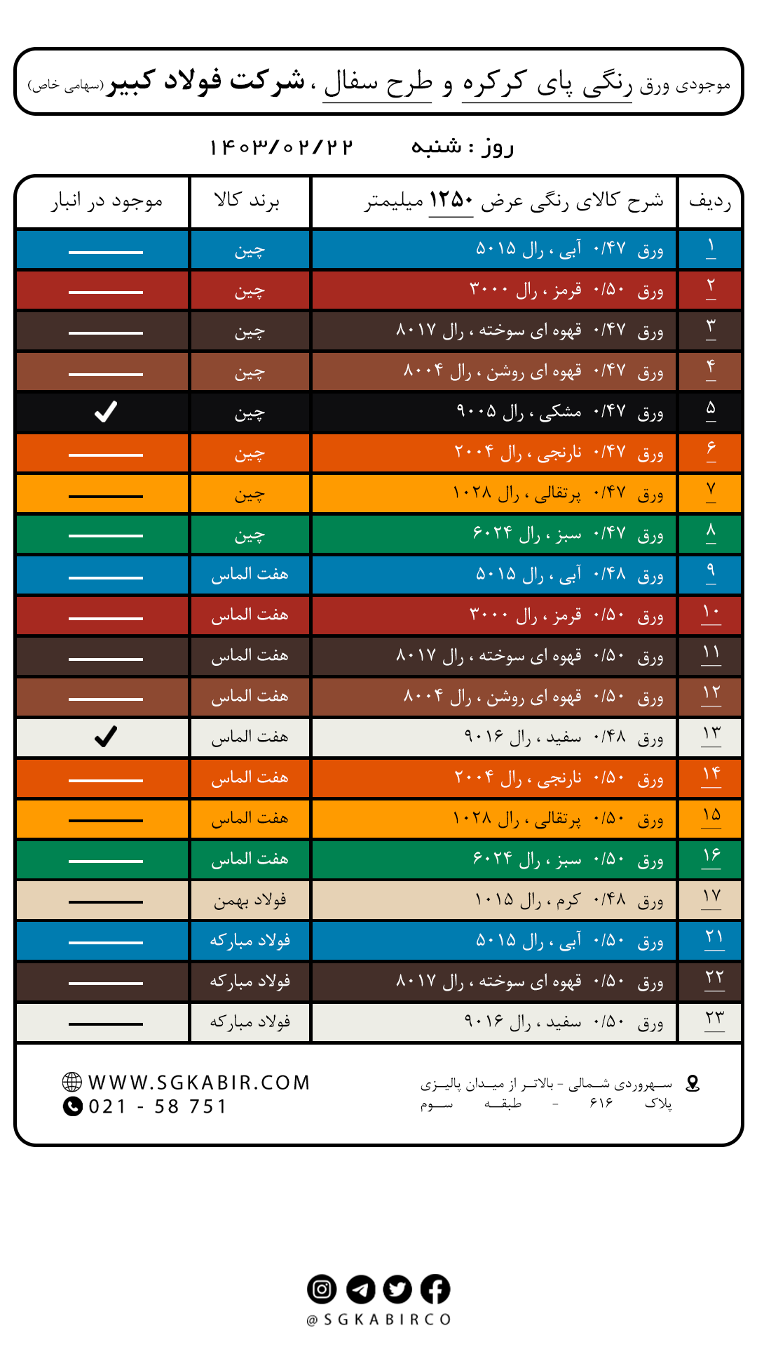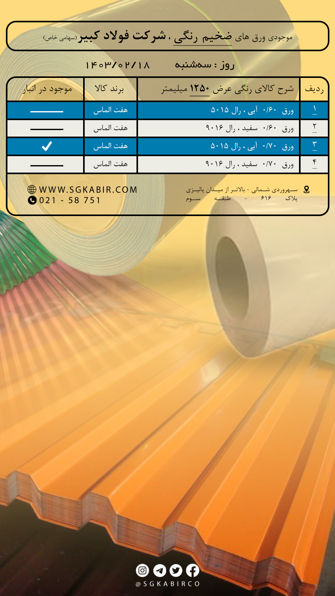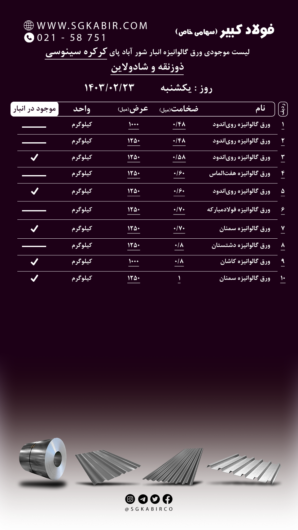 #فولاد_کبیر ——————————————- 💠شرکت فولادکبیر 📌(سهامی خاص) ✅انواع طرح سفال شيرواني ✅عرشه فولادي ✅طرح سینوسی ✅ذوزنقه ✅طرح شادولاین ✅شرکت فولادکبیر(سهامی خاص) ...