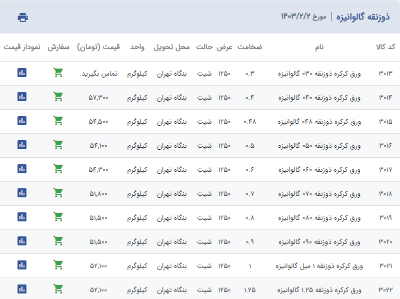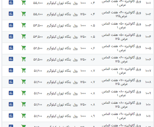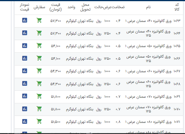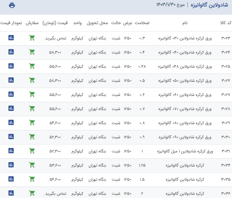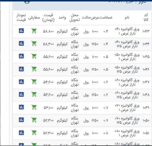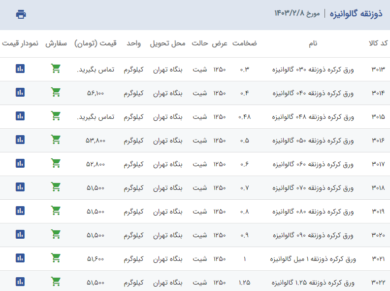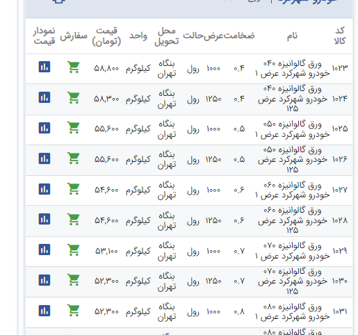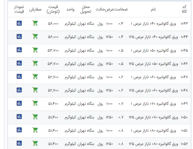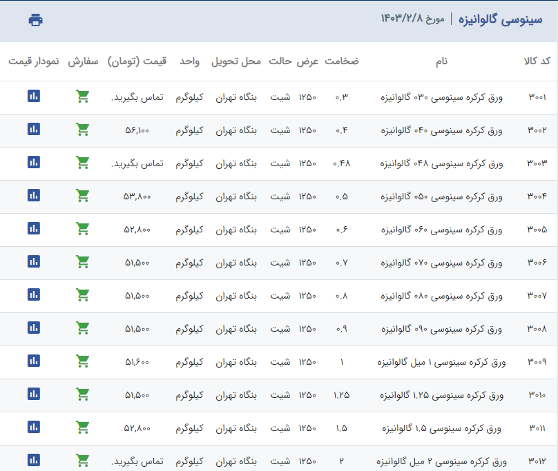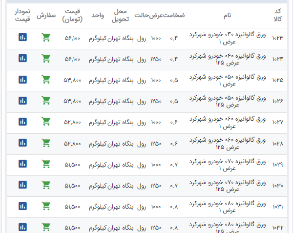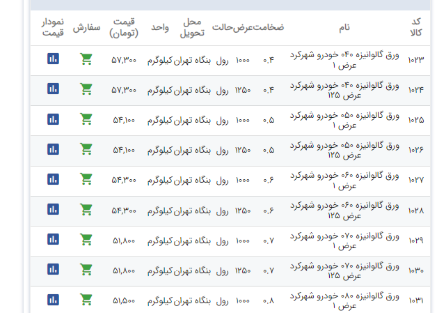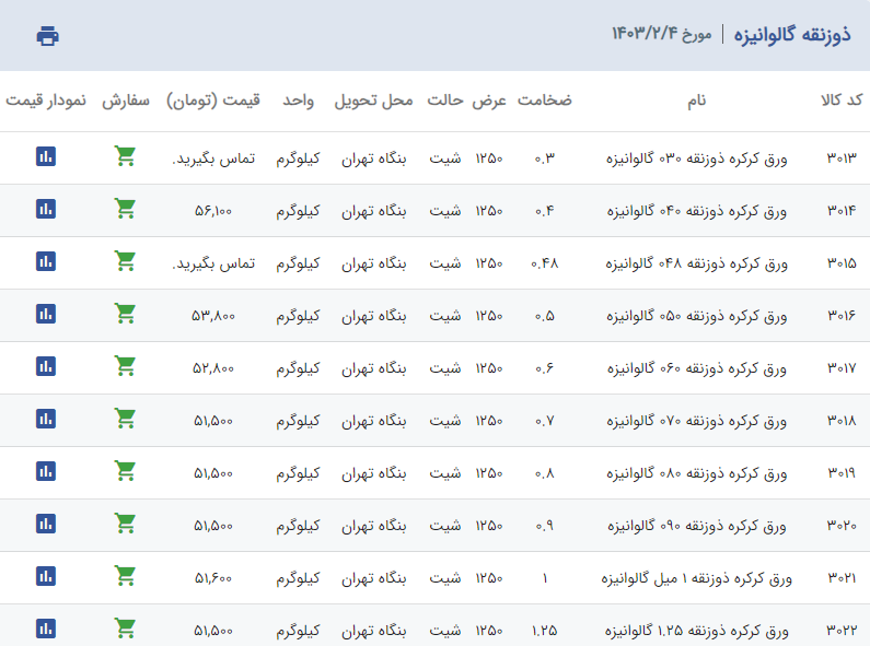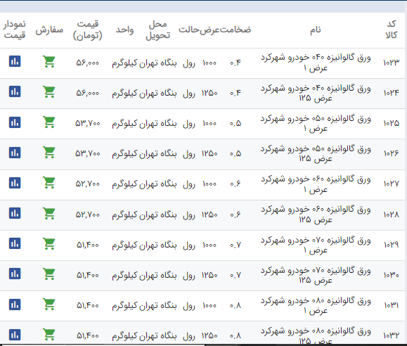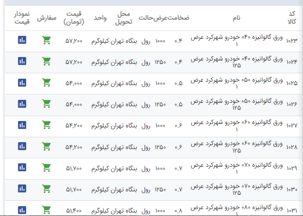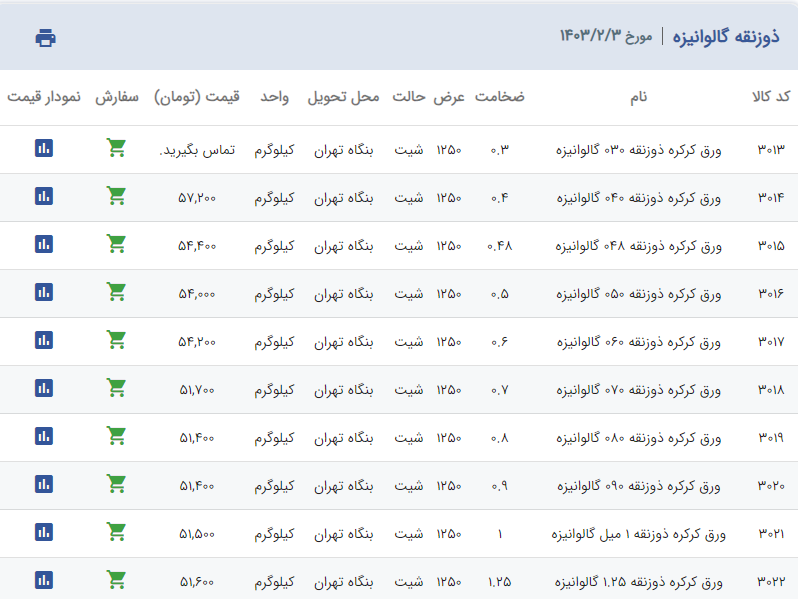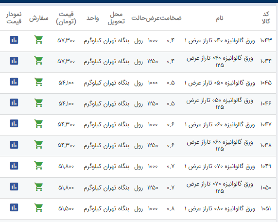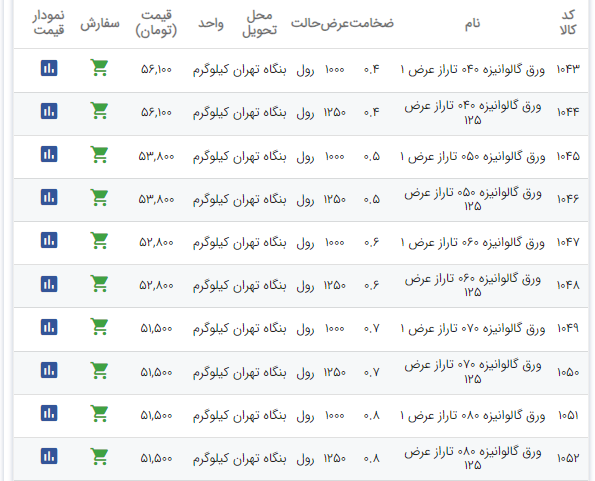 اعلام موجودی ورق گالوانیزه