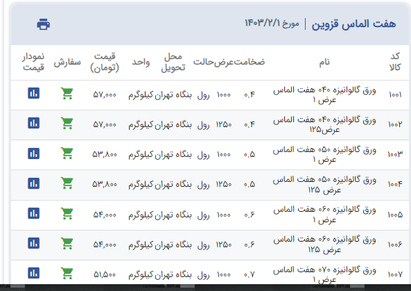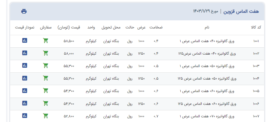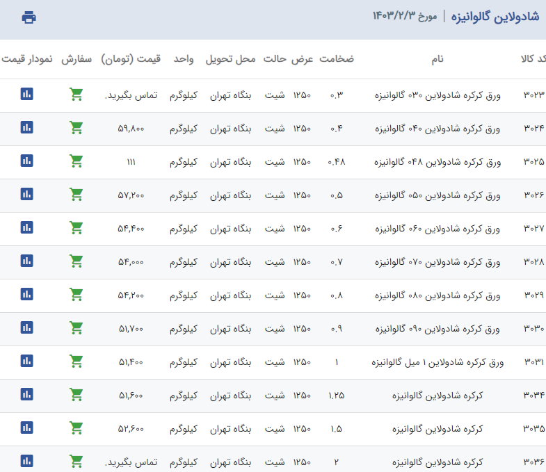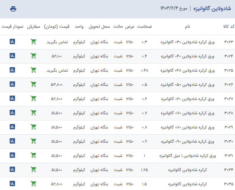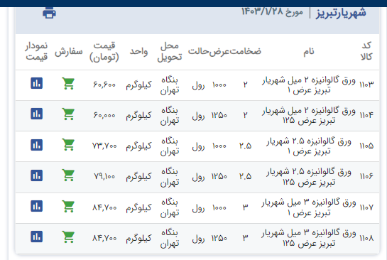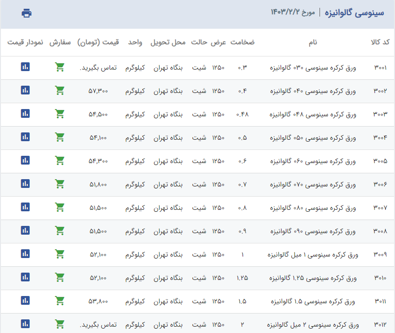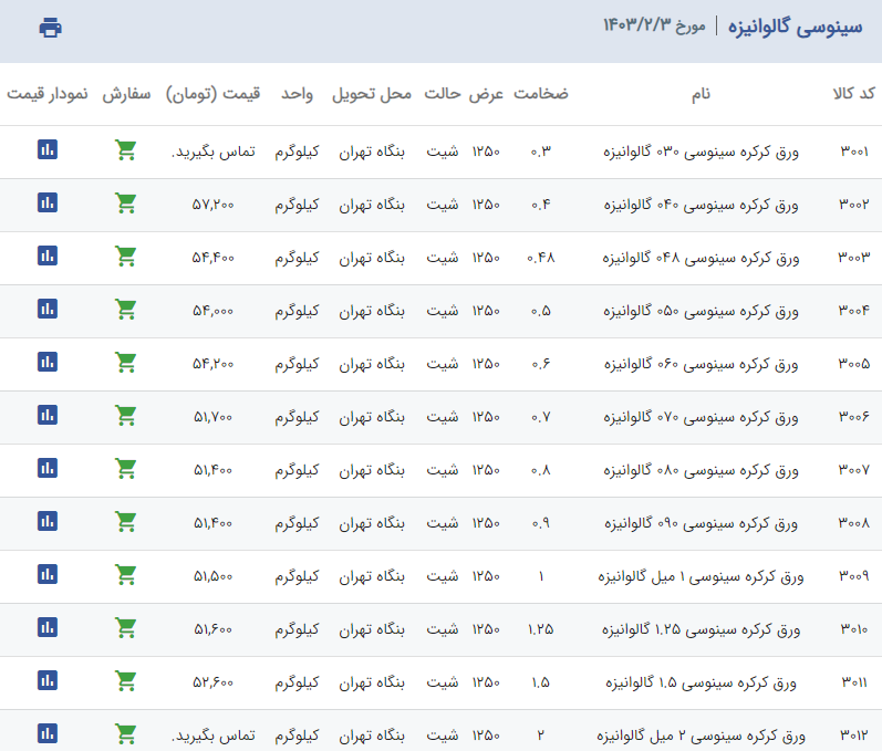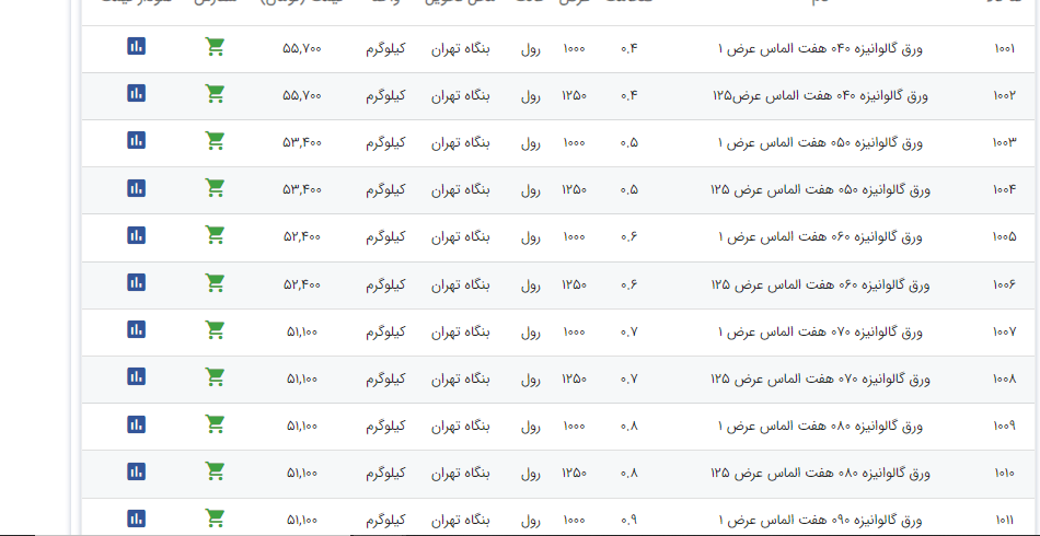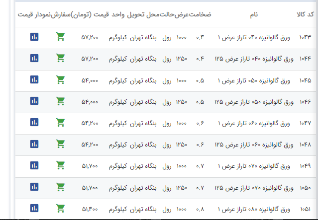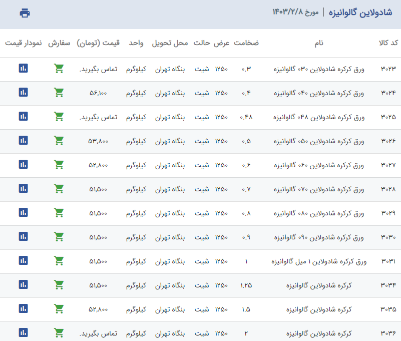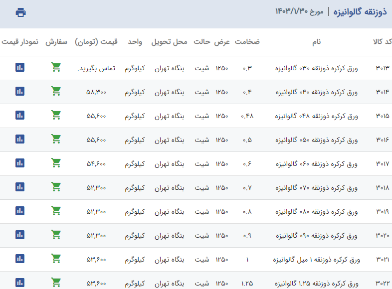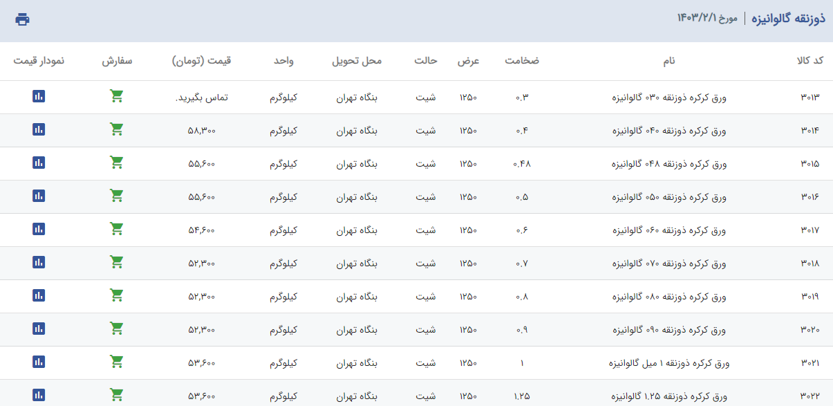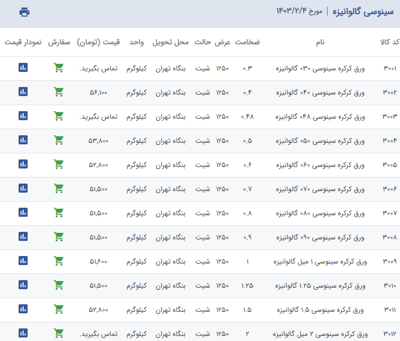 اعلام موجودی ورق گالوانیزه