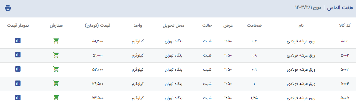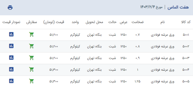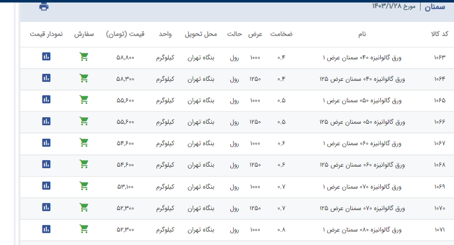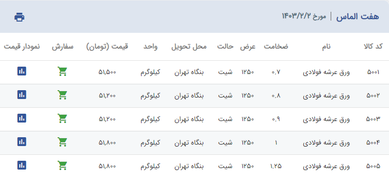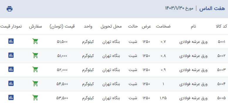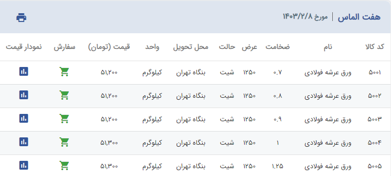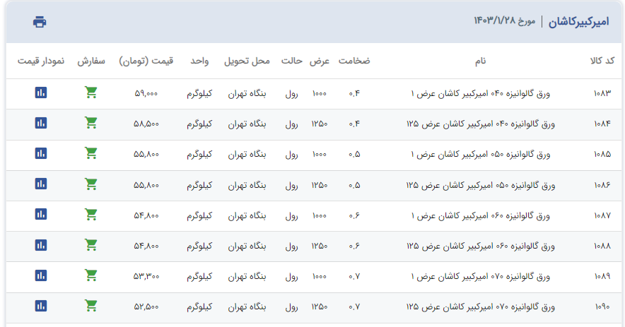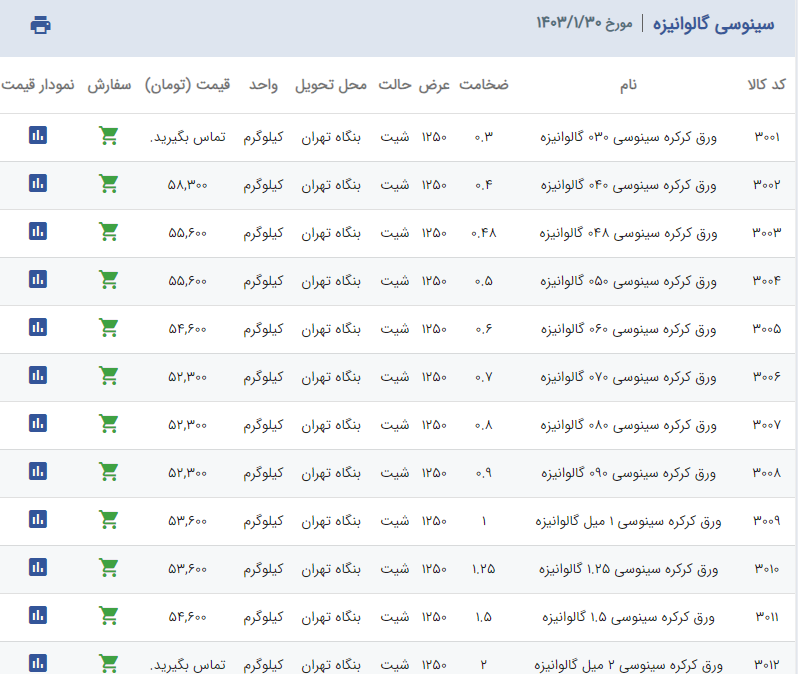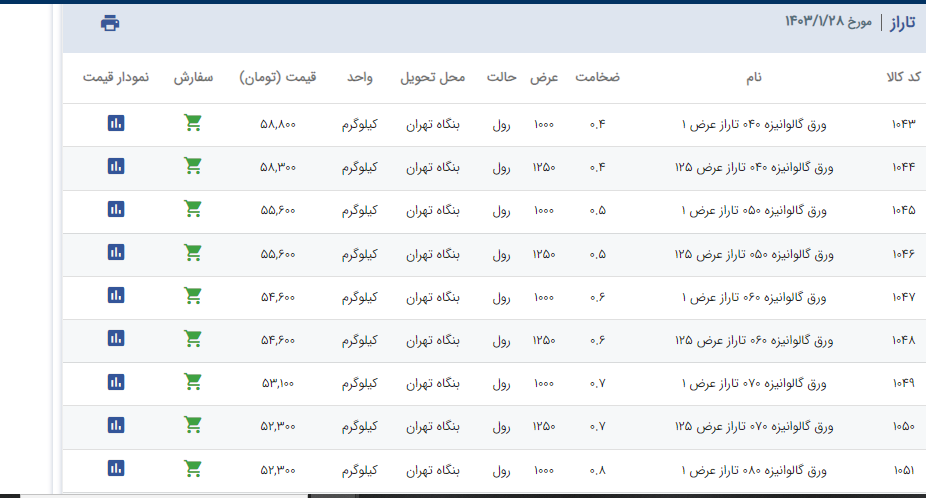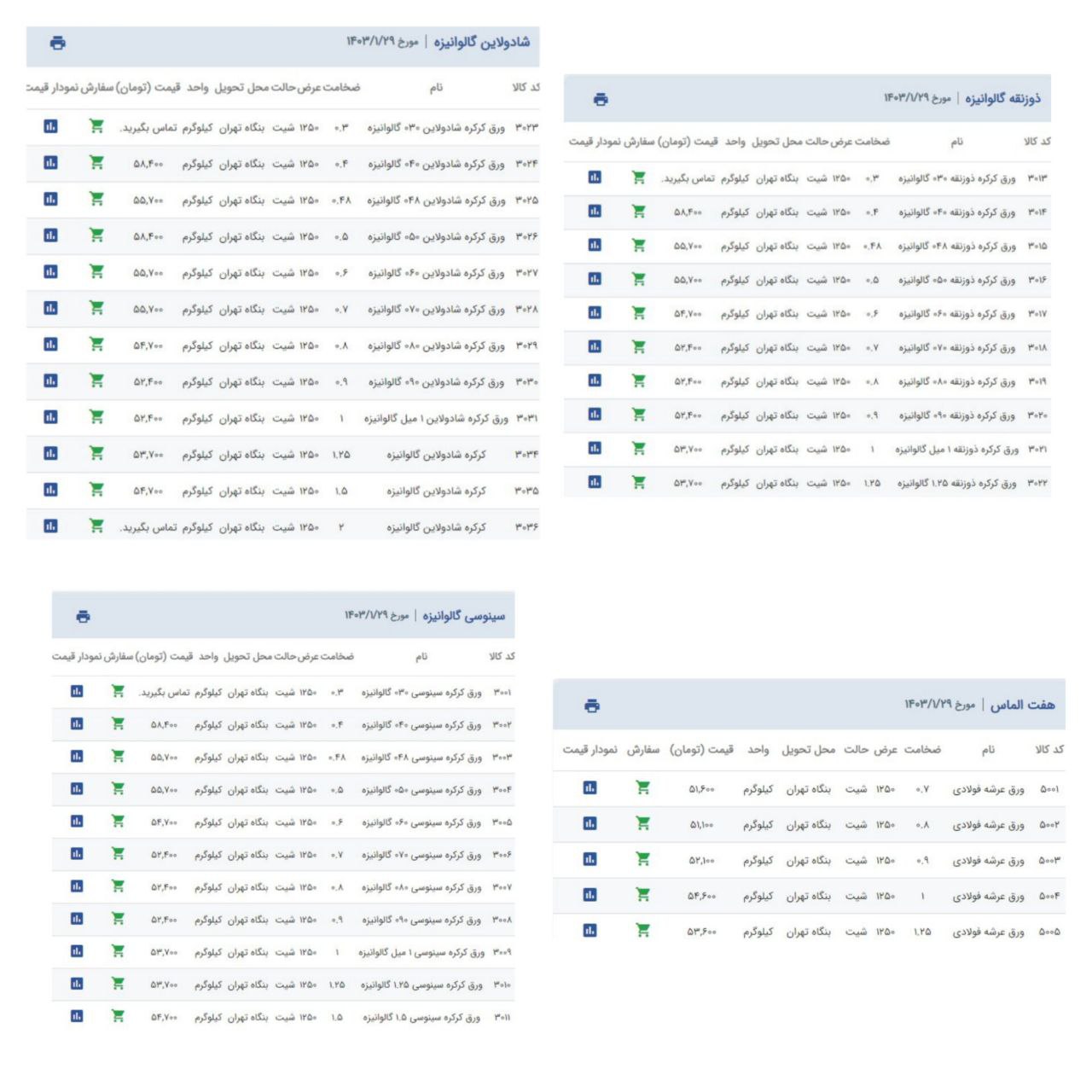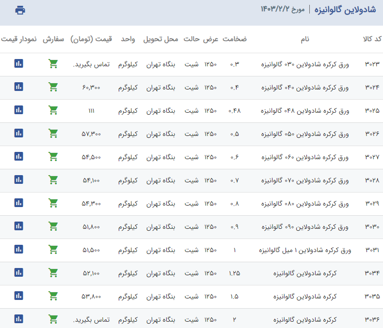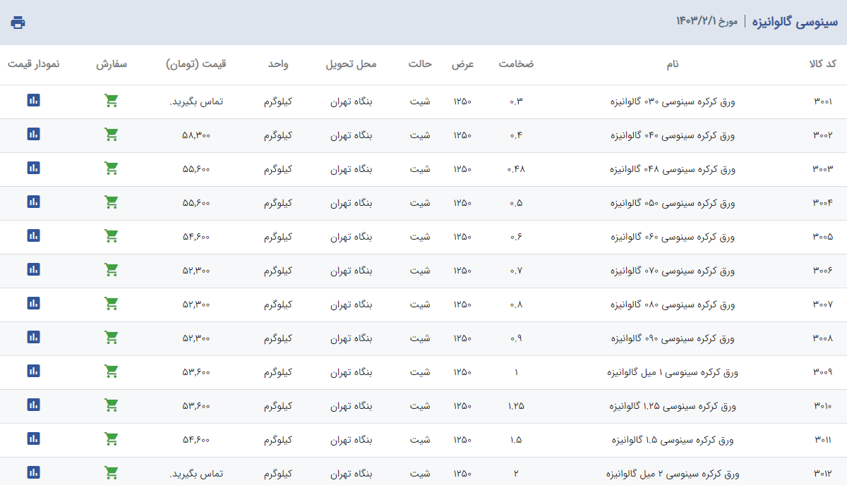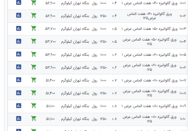 اعلام موجودی ورق گالوانیزه