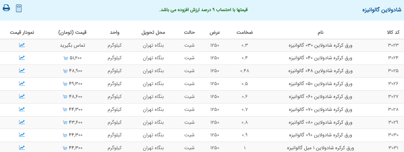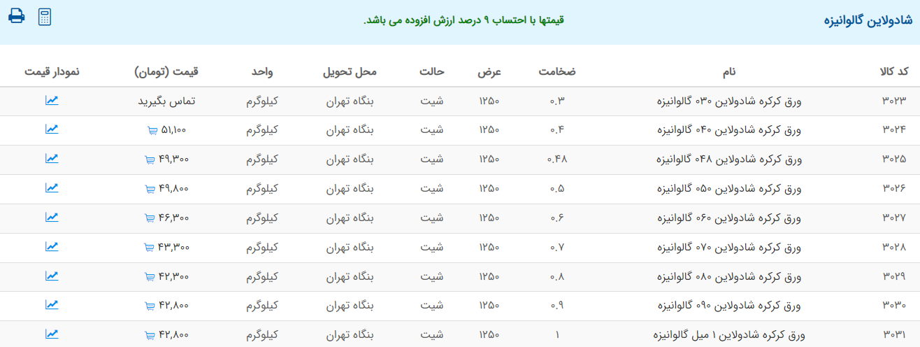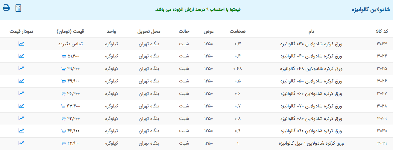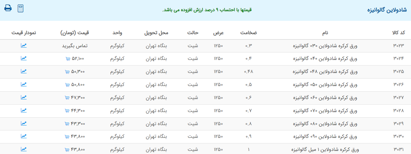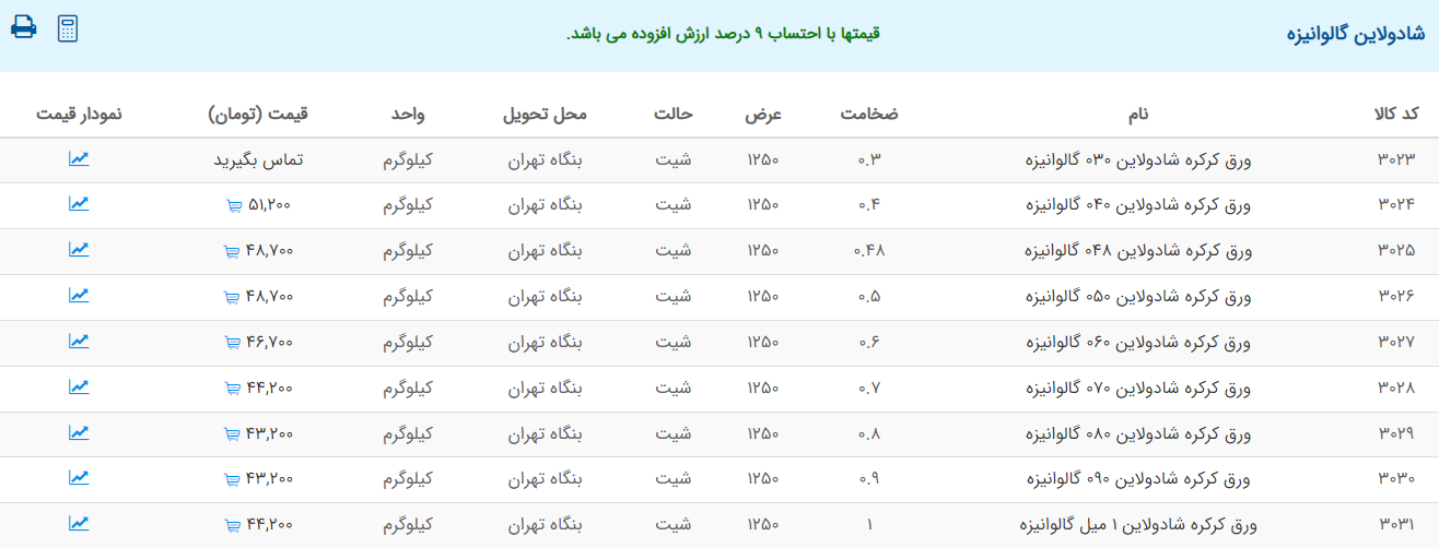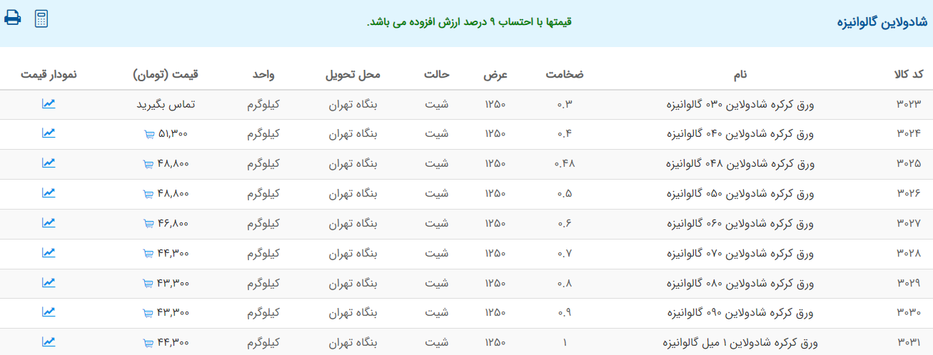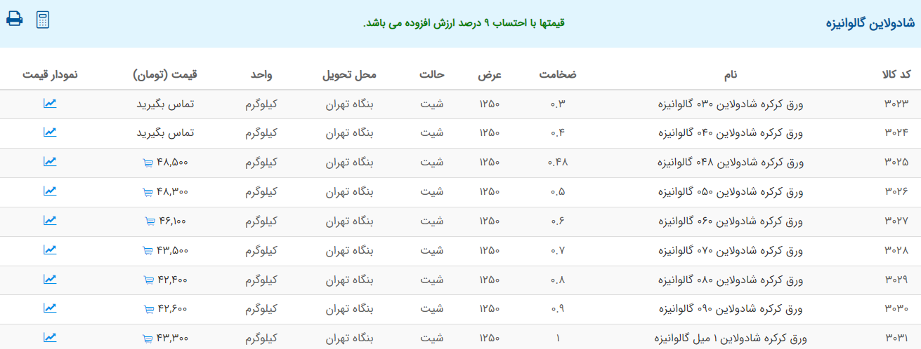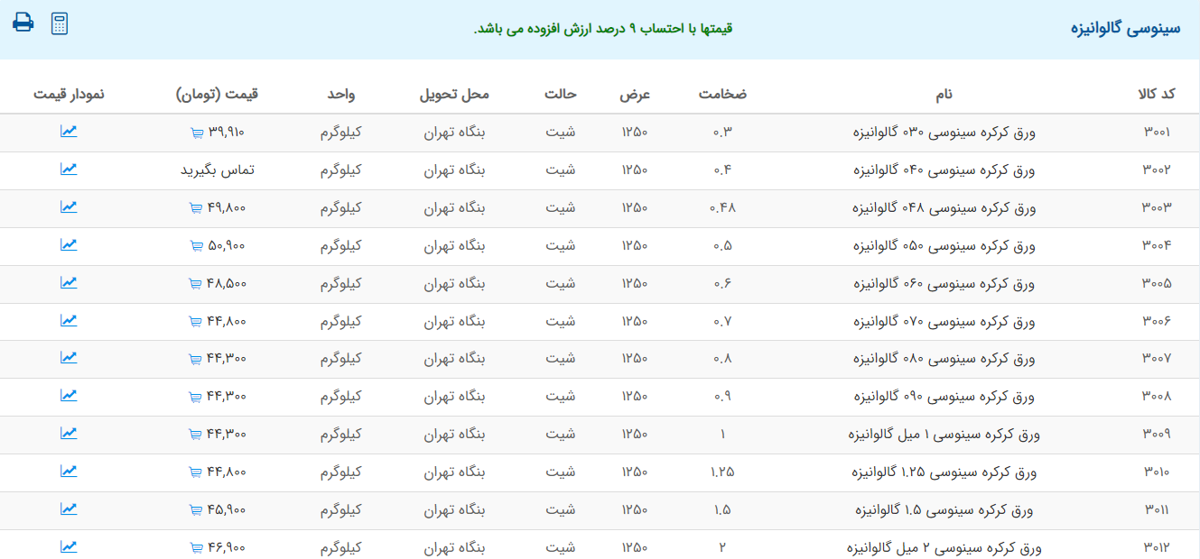 اعلام موجودی ورق گالوانیزه