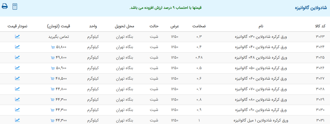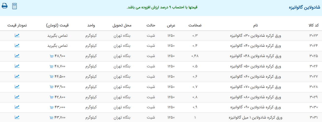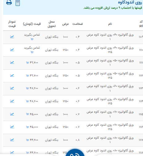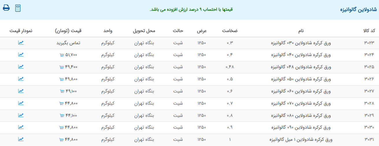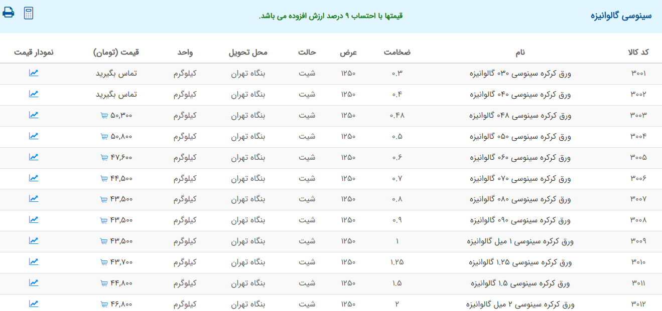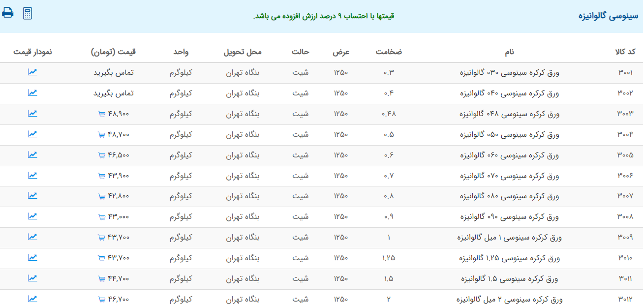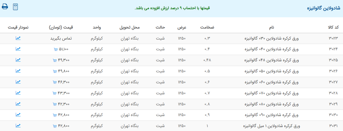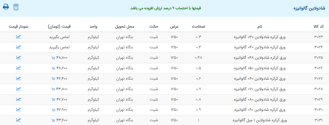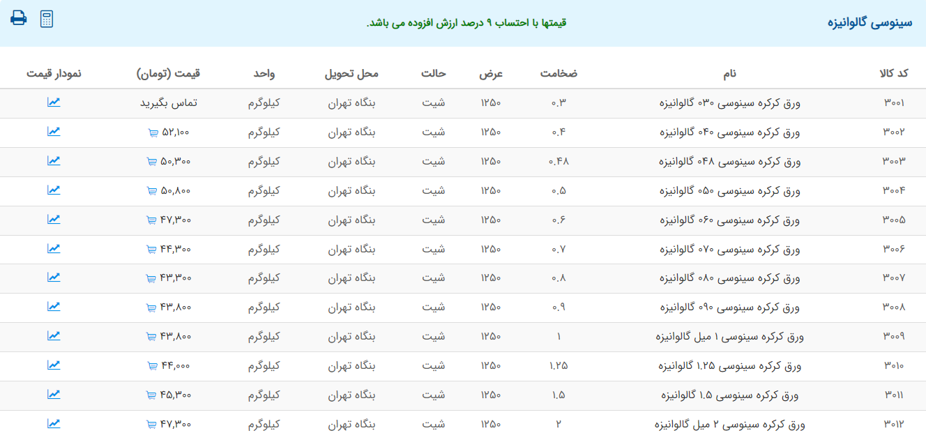 اعلام موجودی ورق گالوانیزه