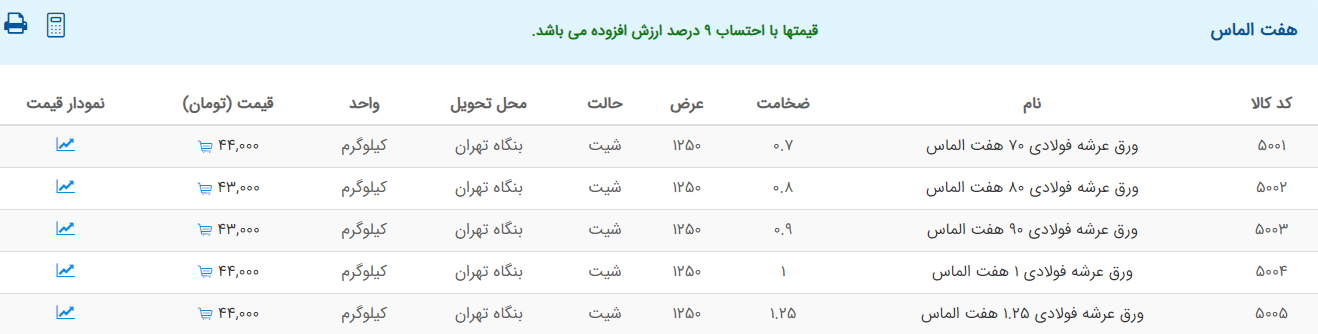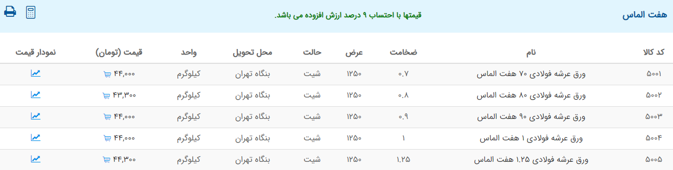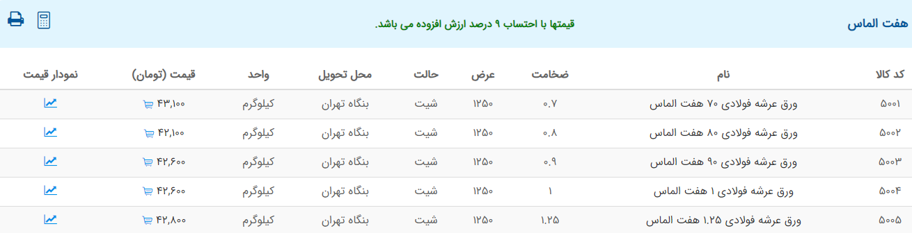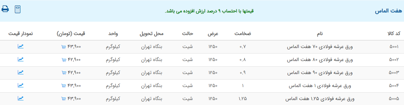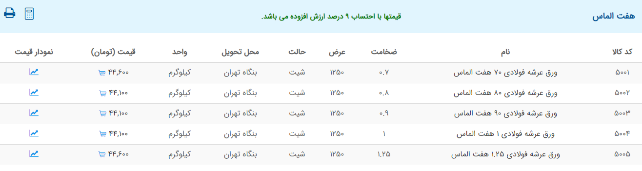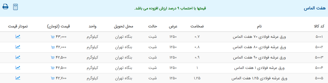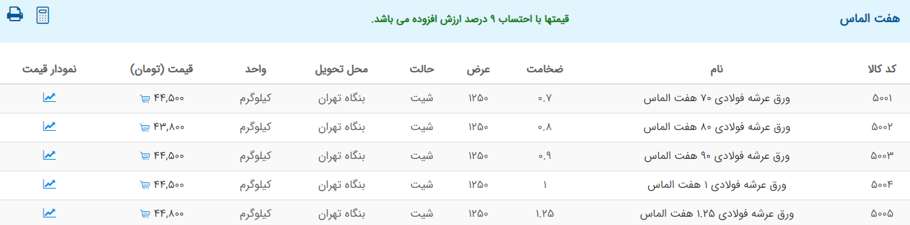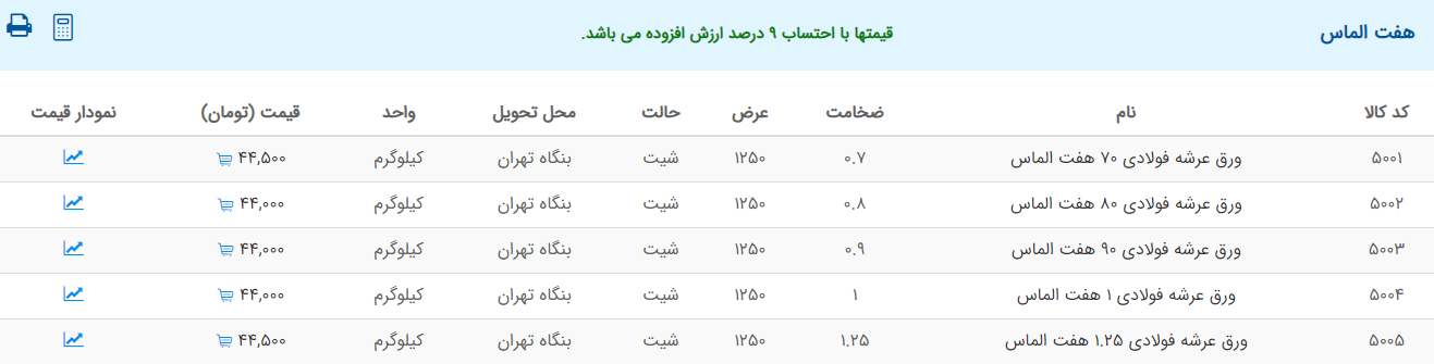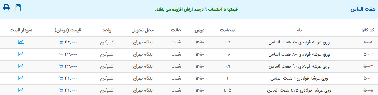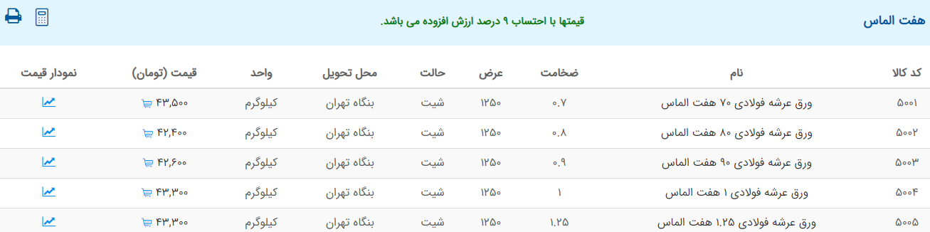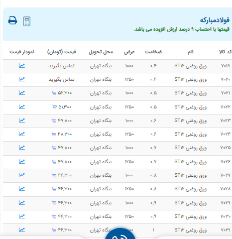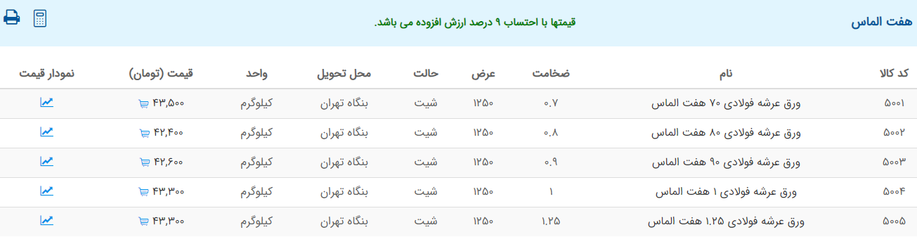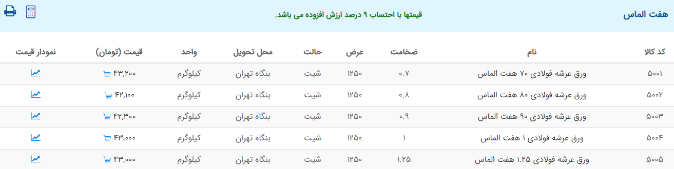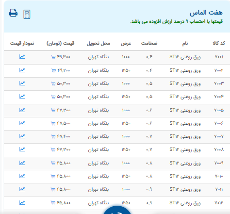 اعلام موجودی ورق گالوانیزه