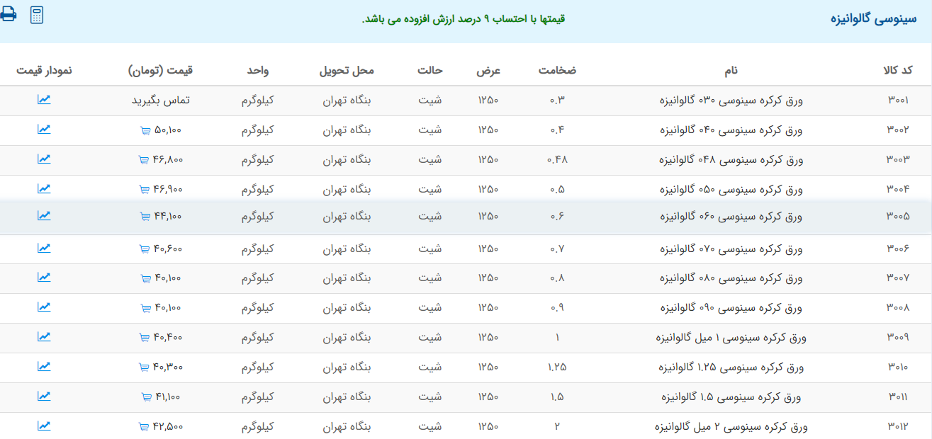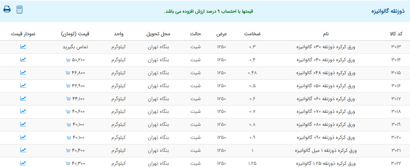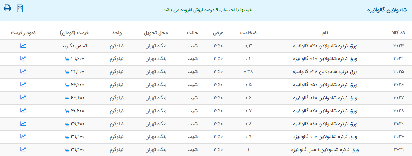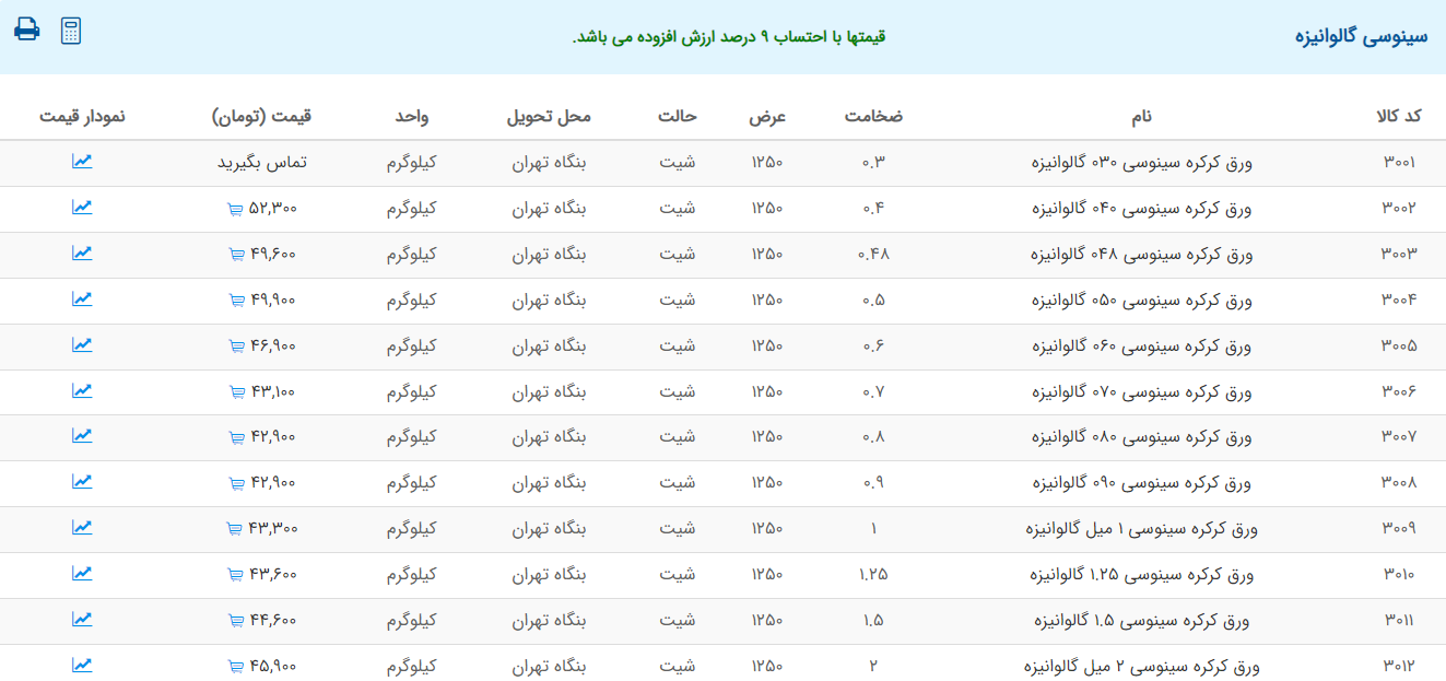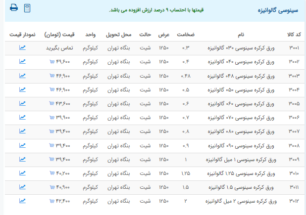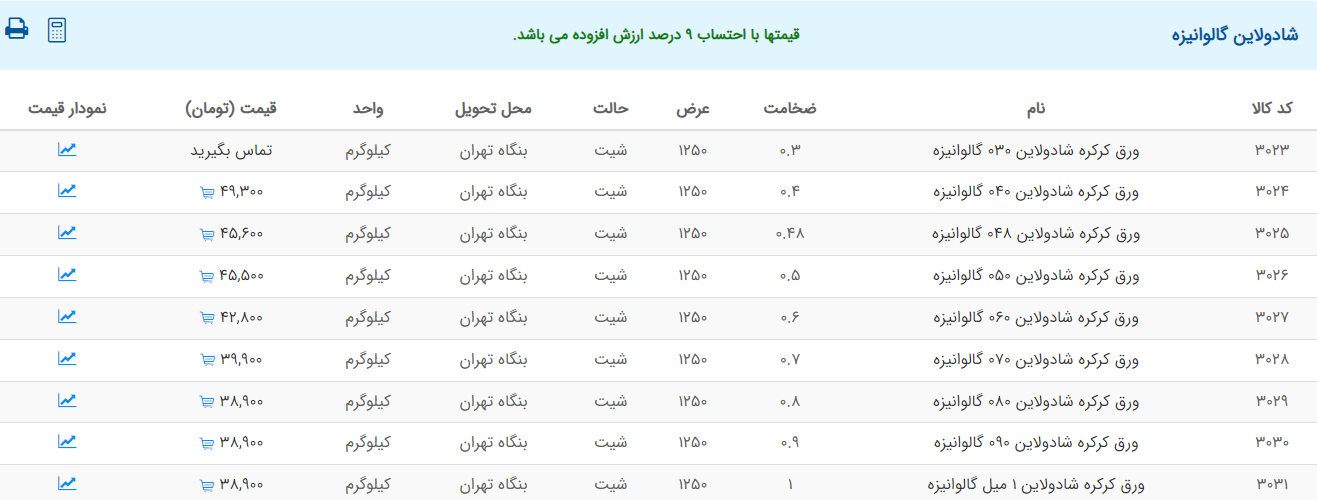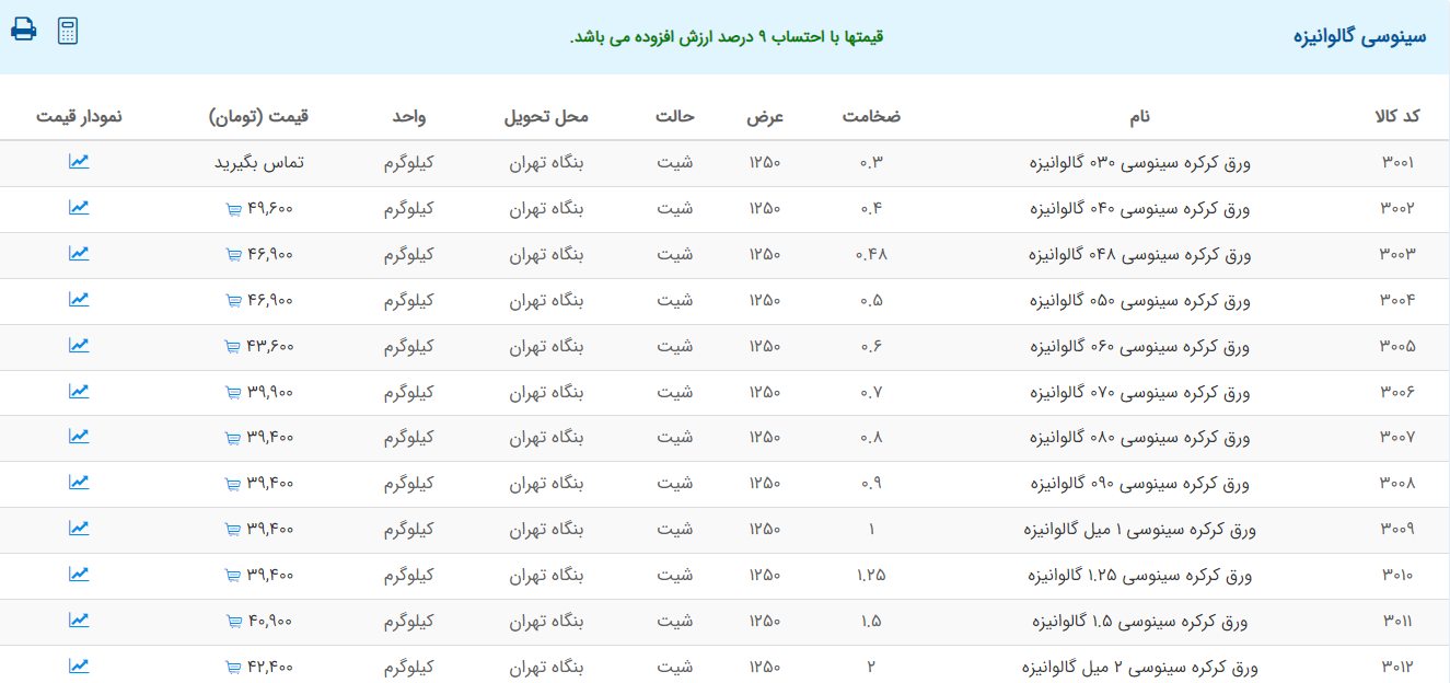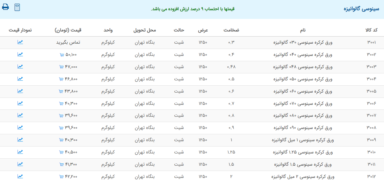 اعلام موجودی ورق گالوانیزه
