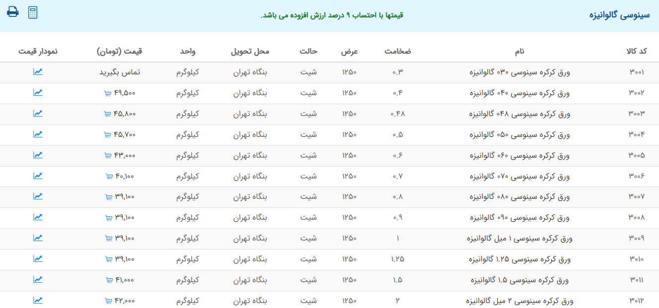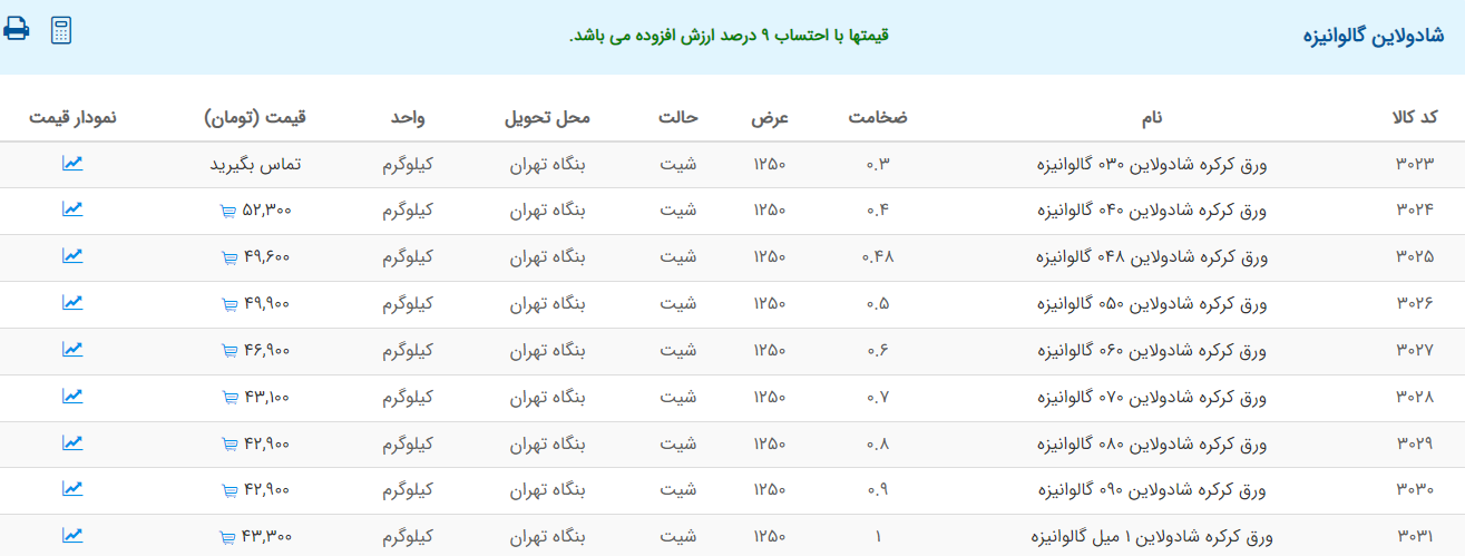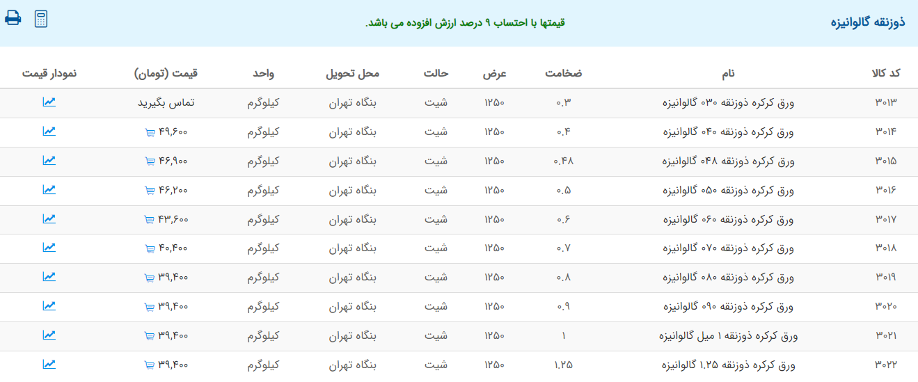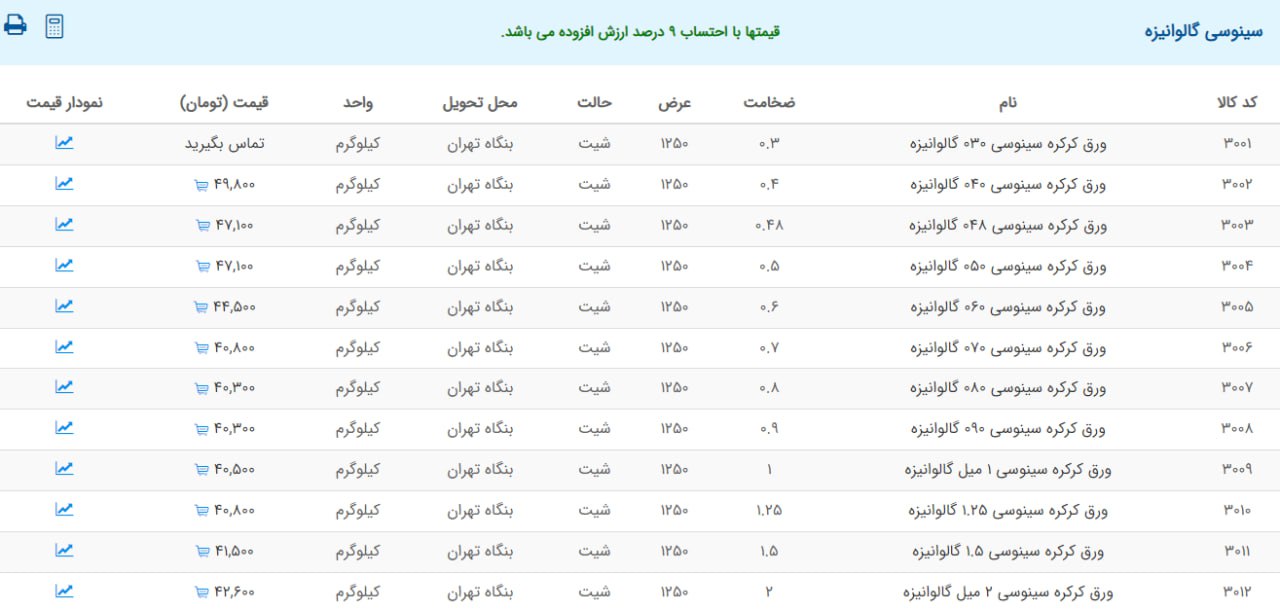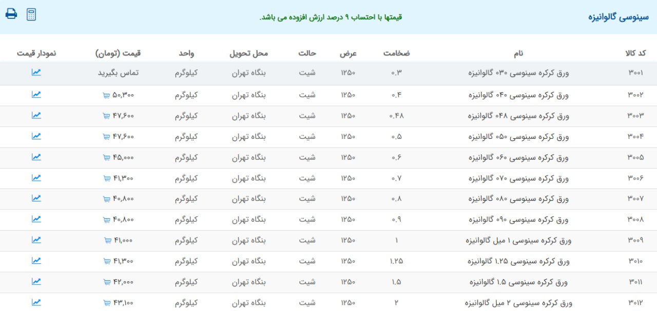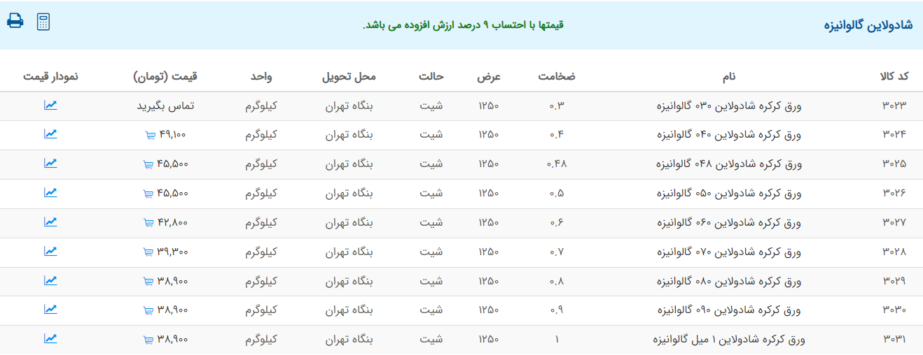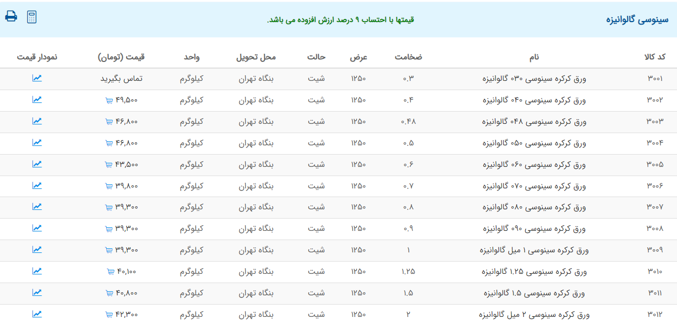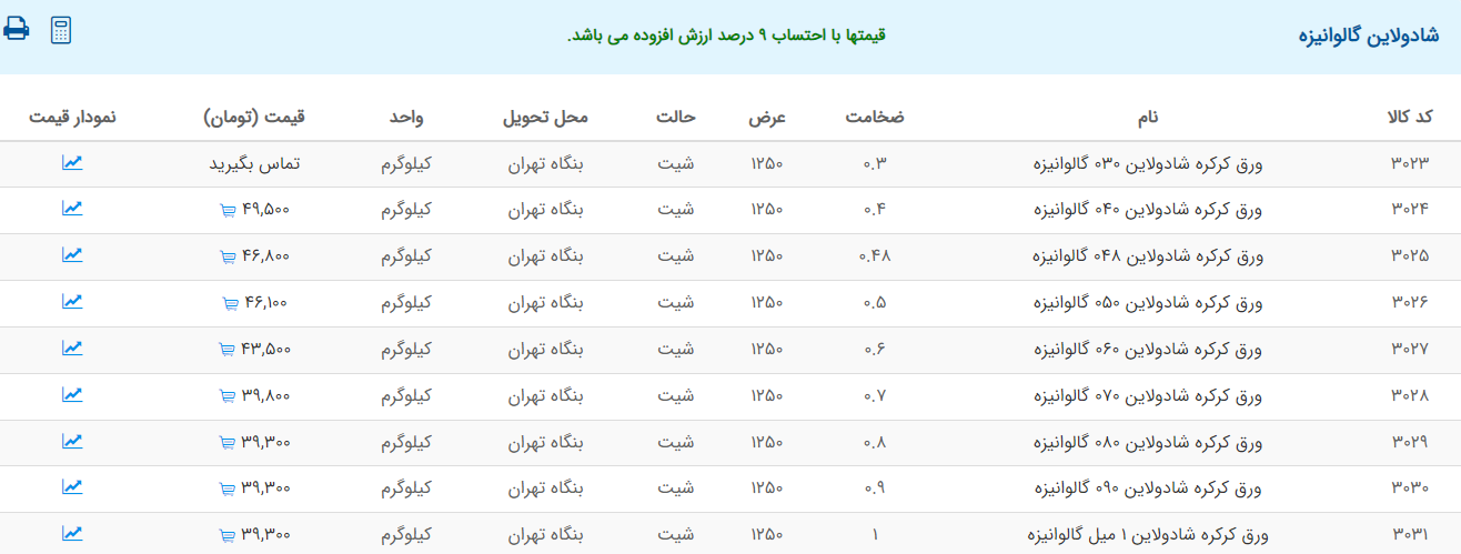 اعلام موجودی ورق گالوانیزه