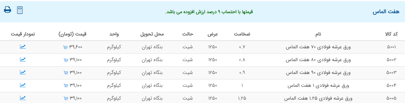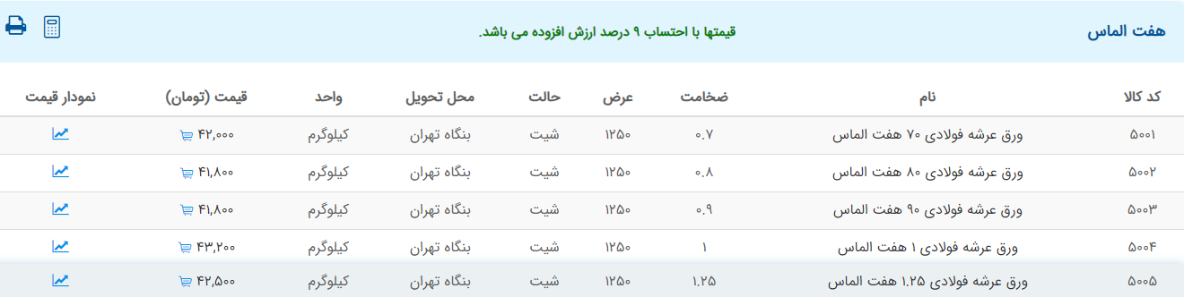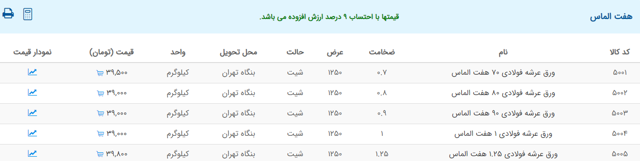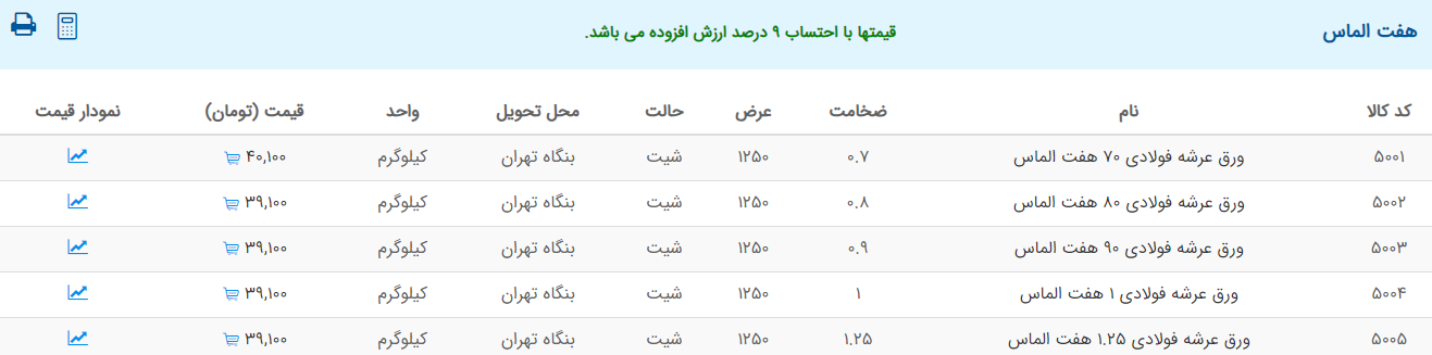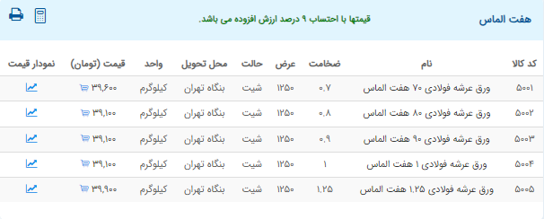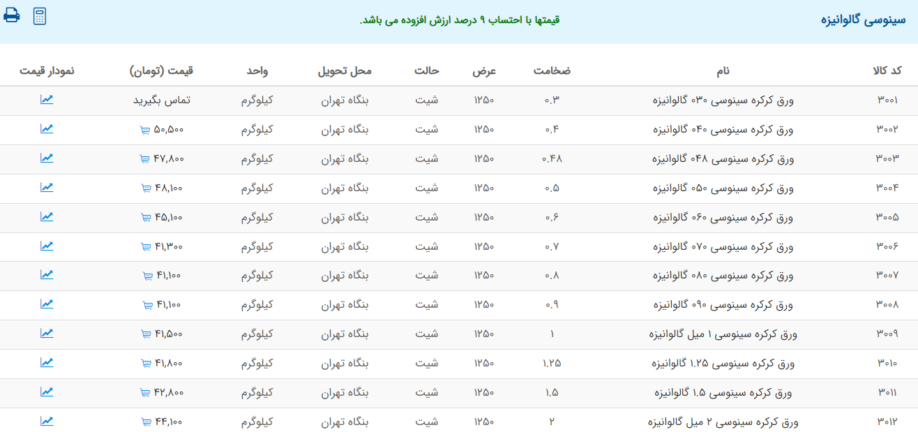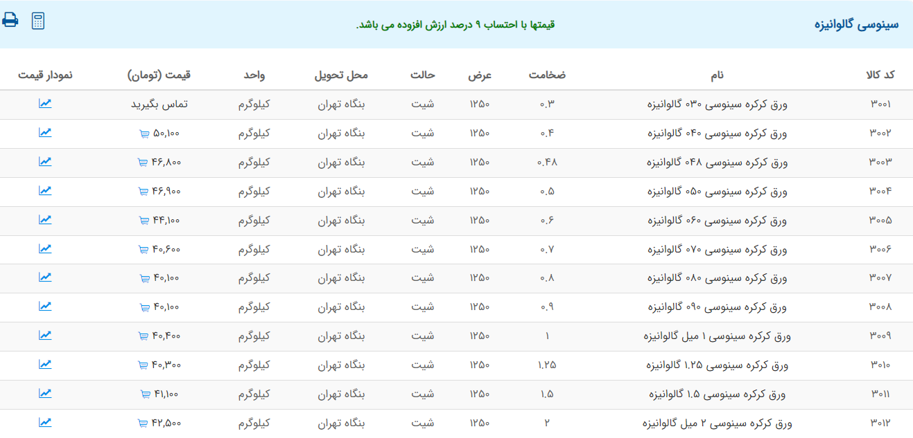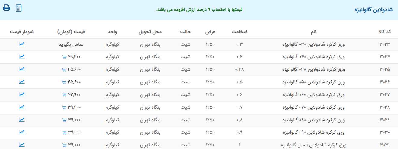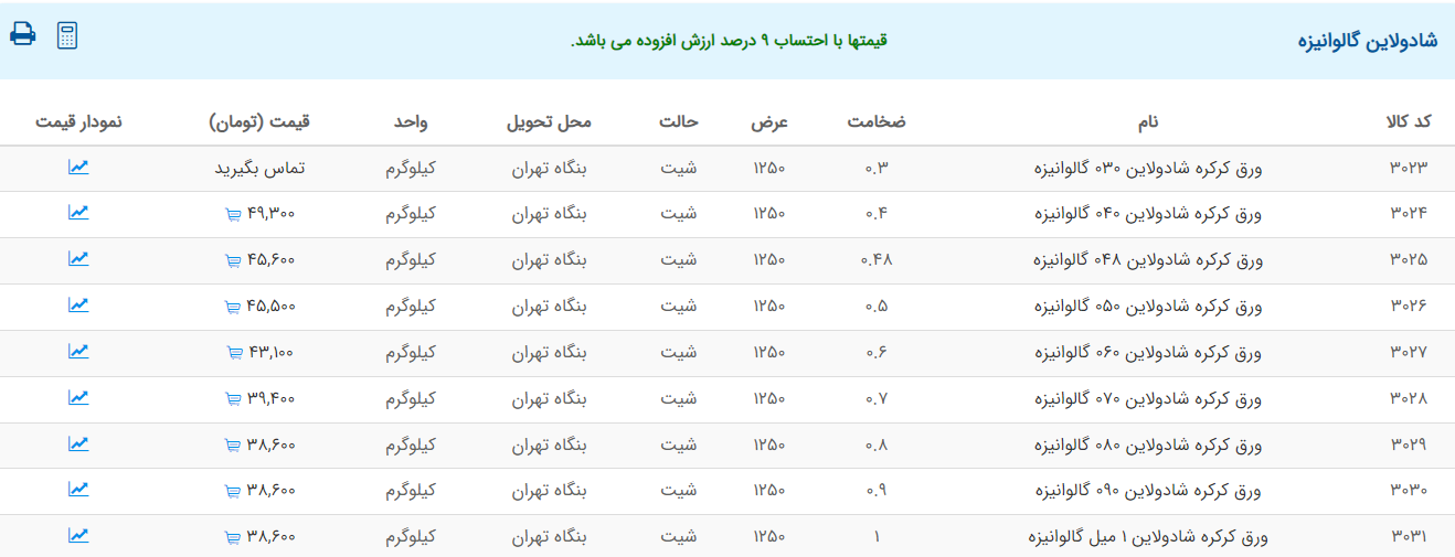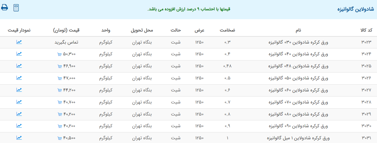 اعلام موجودی ورق گالوانیزه