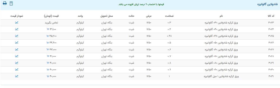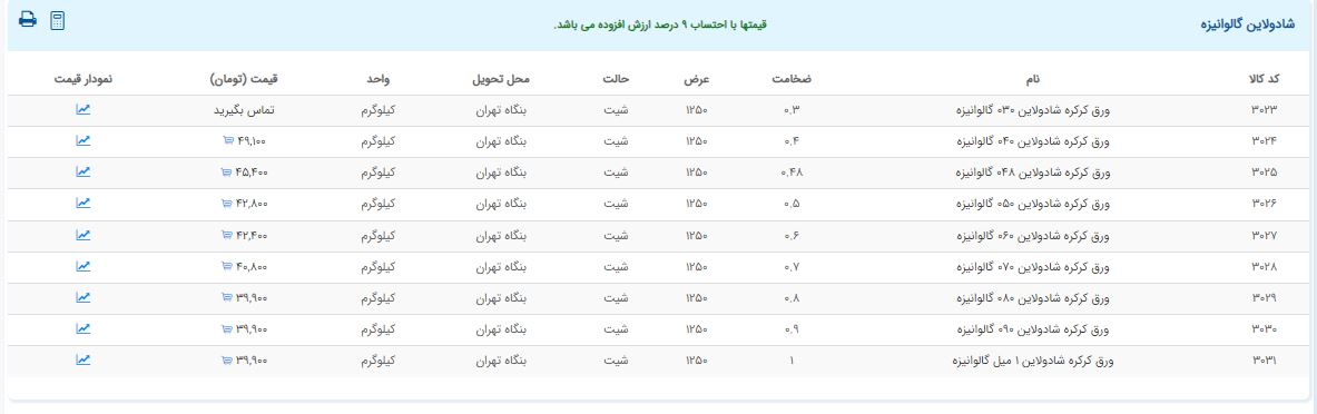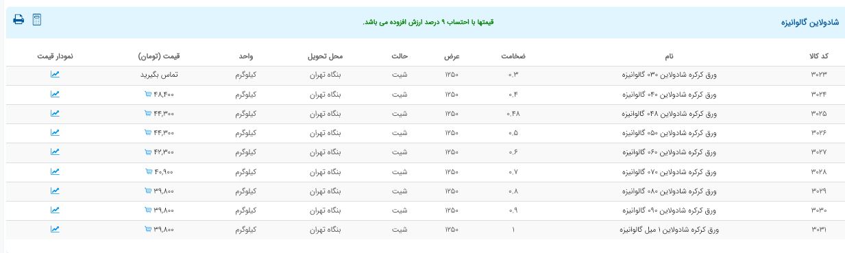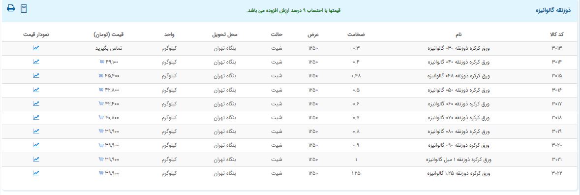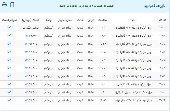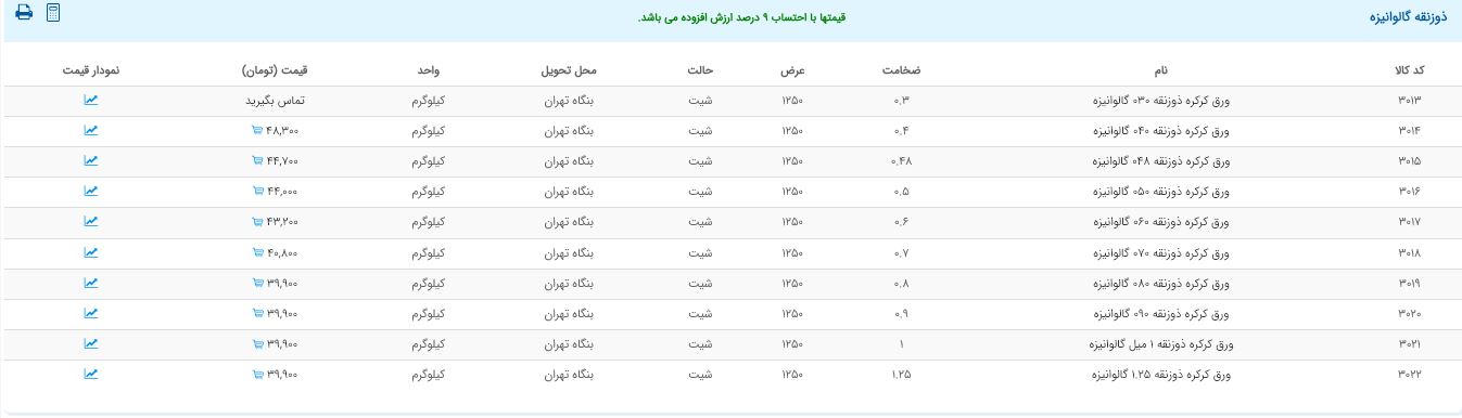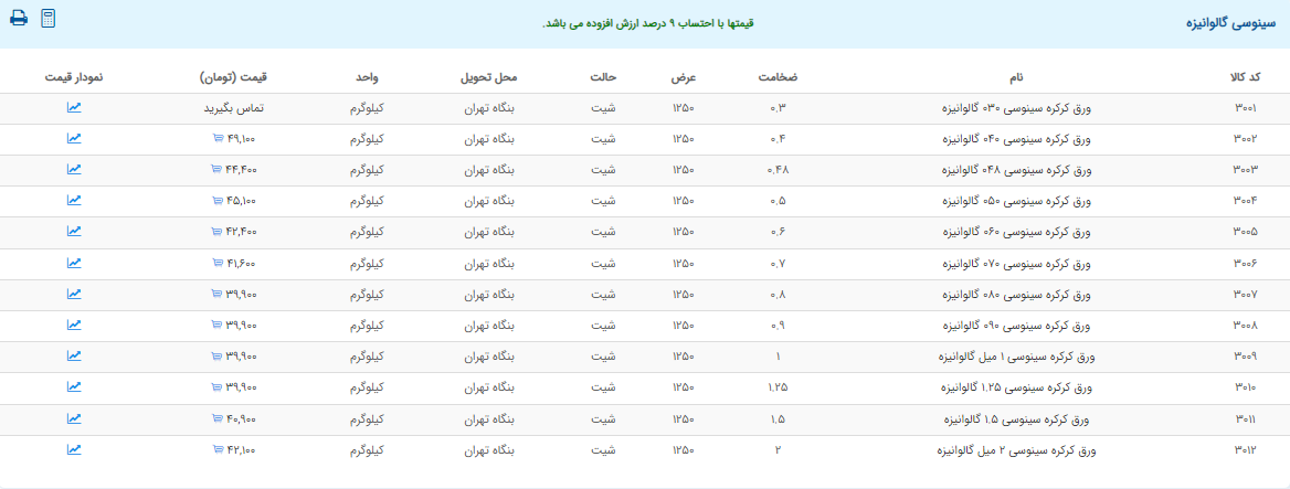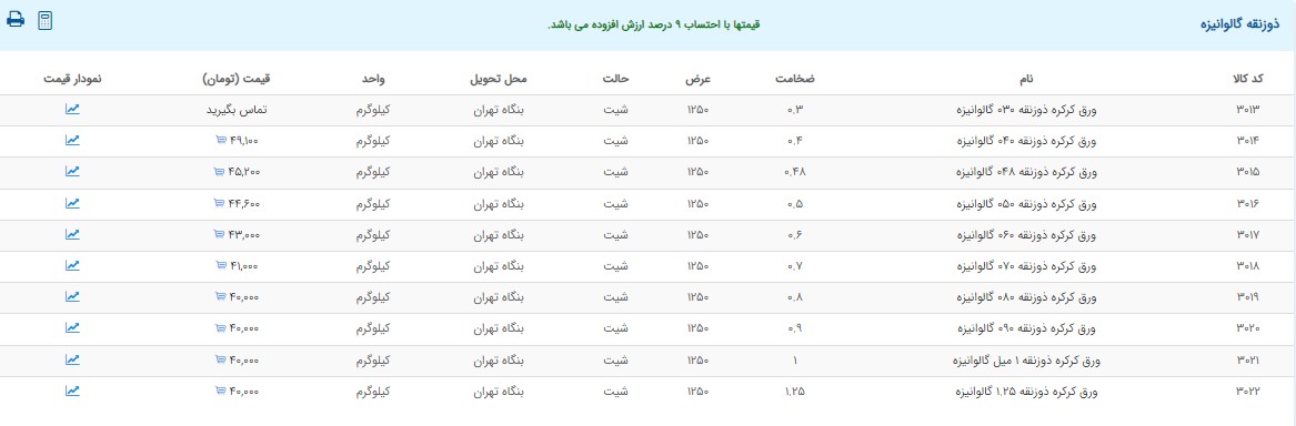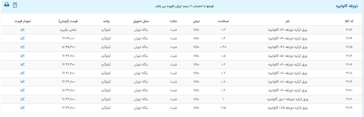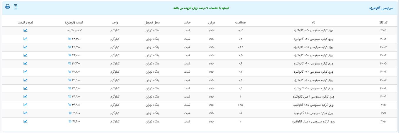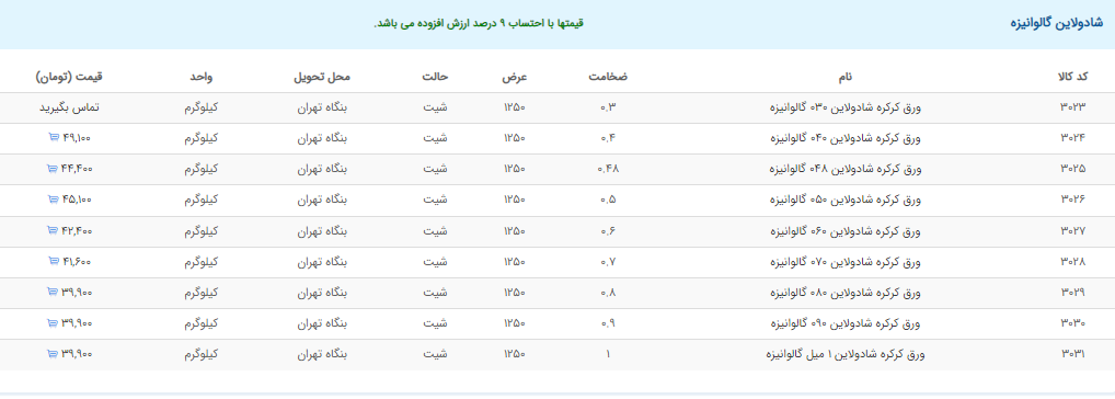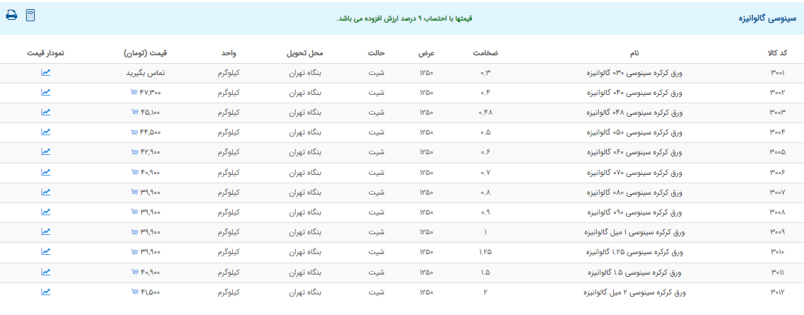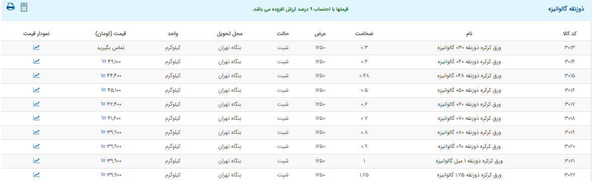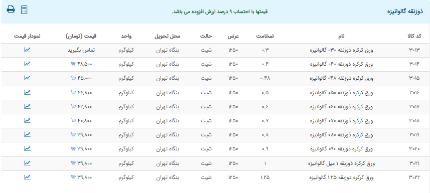 اعلام موجودی ورق گالوانیزه و رنگی