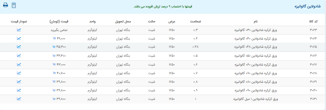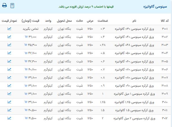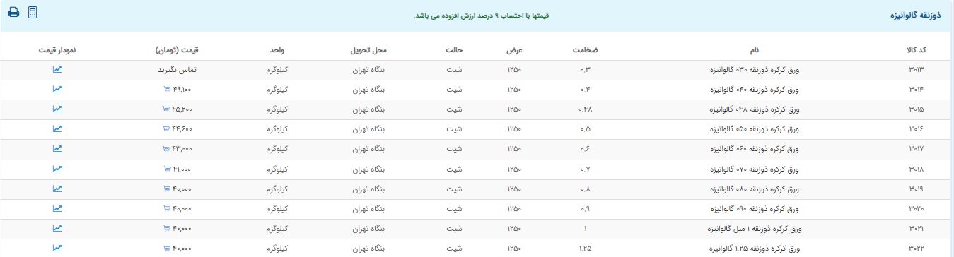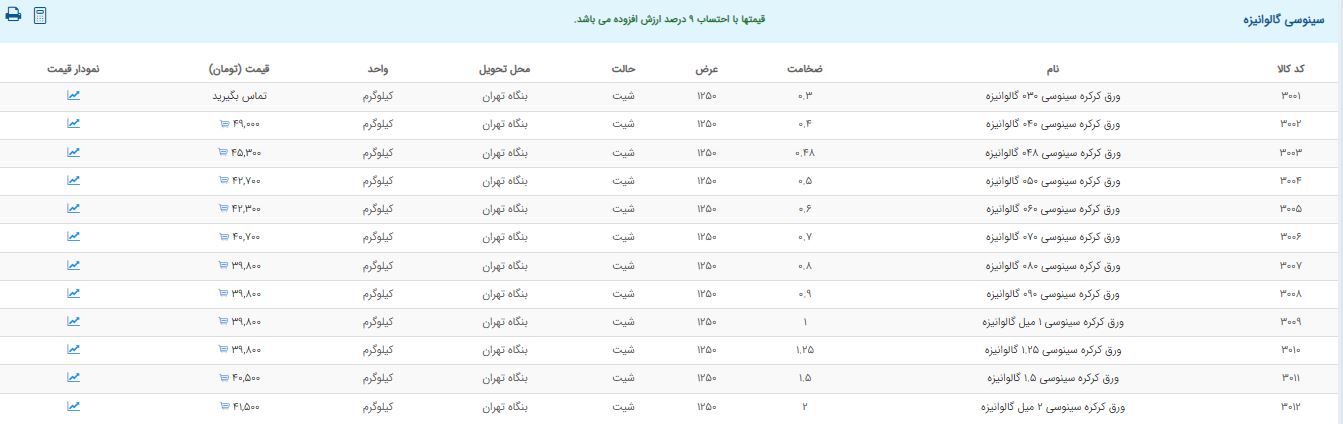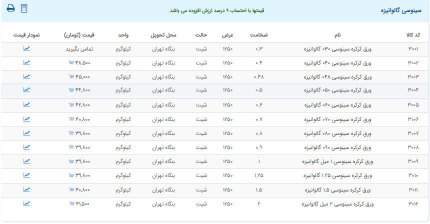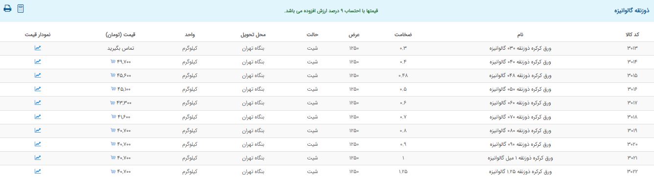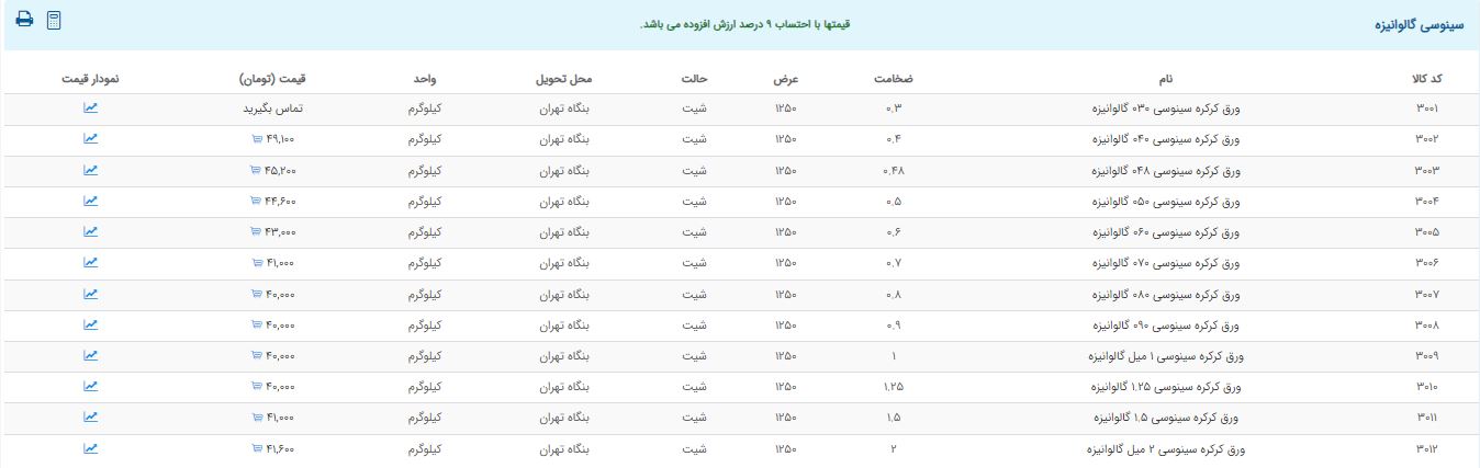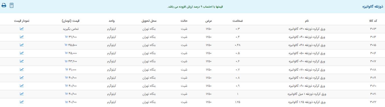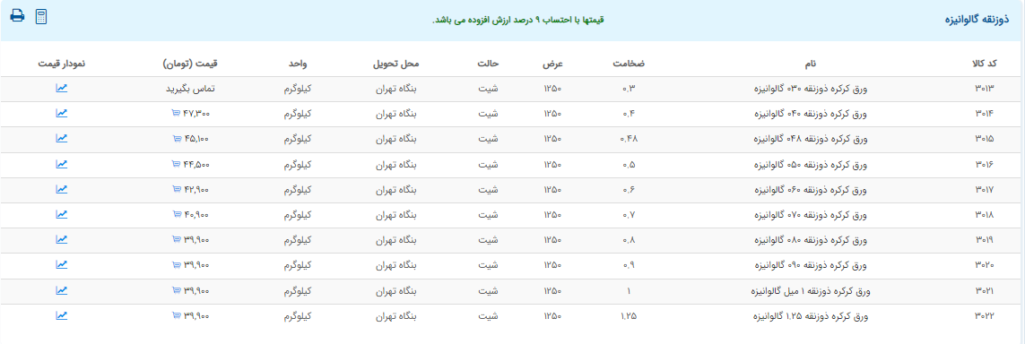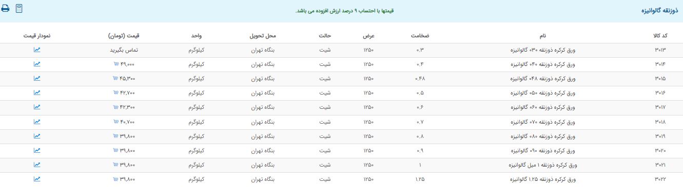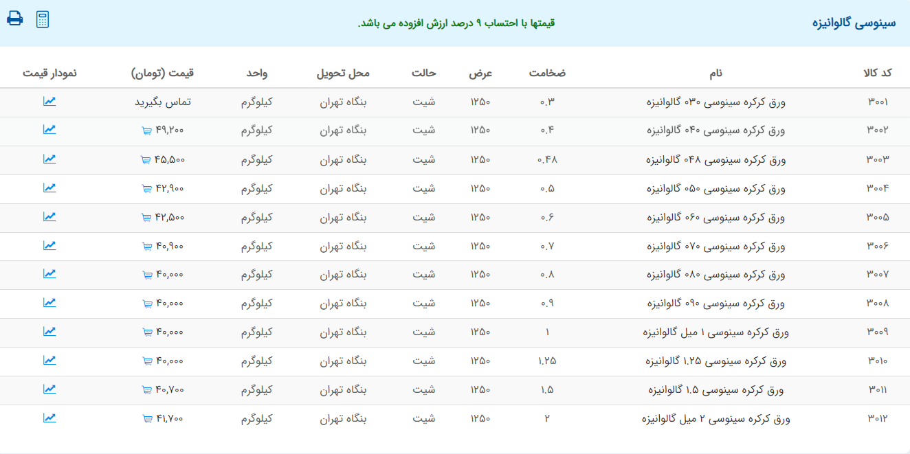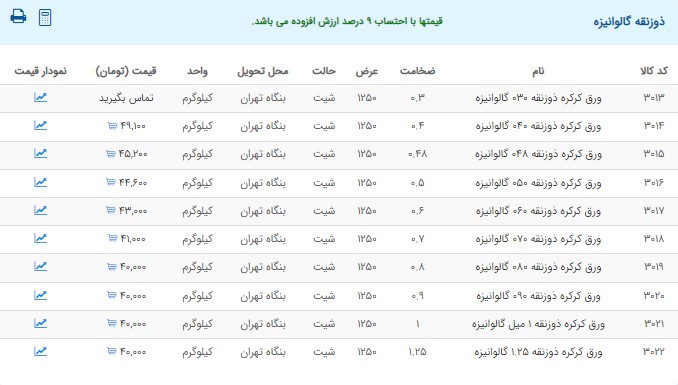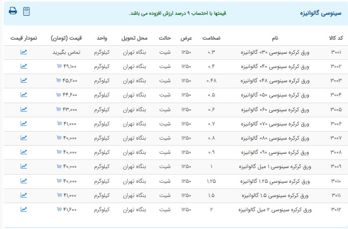 اعلام موجودی ورق گالوانیزه و رنگی