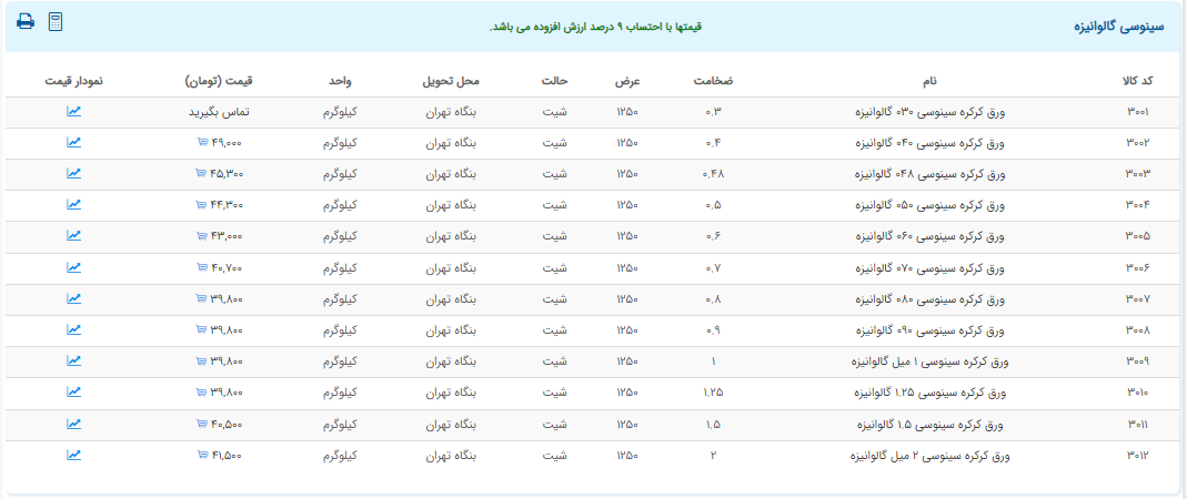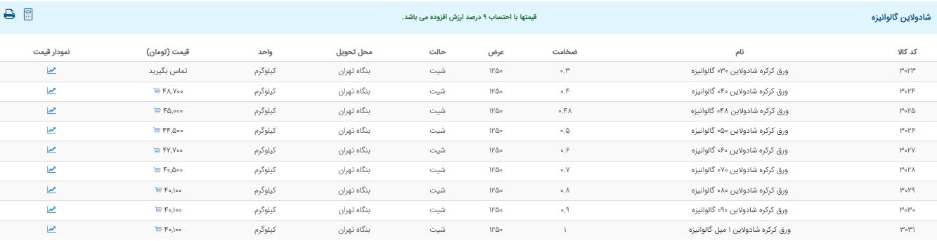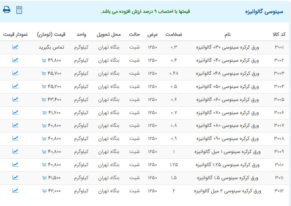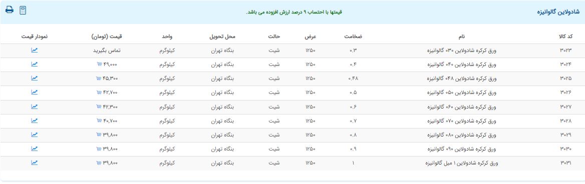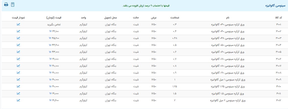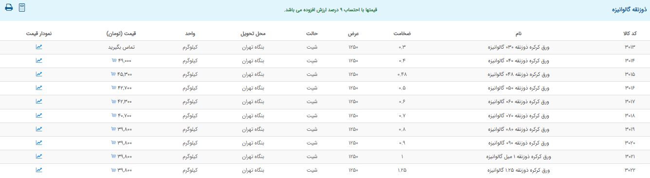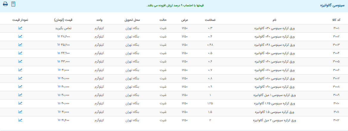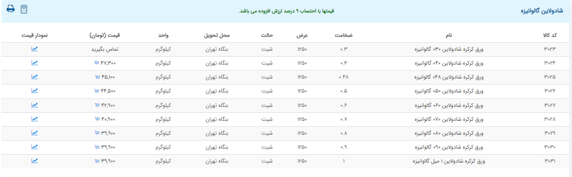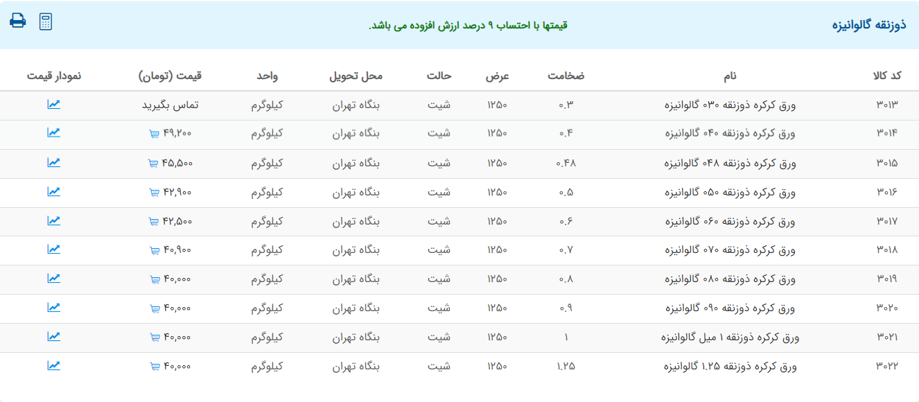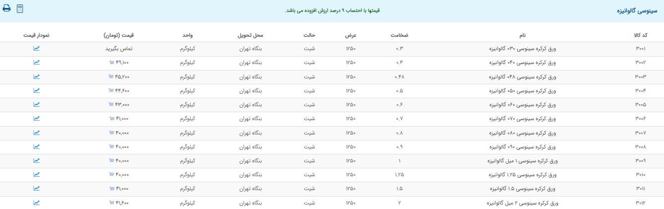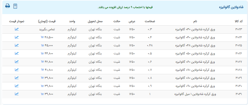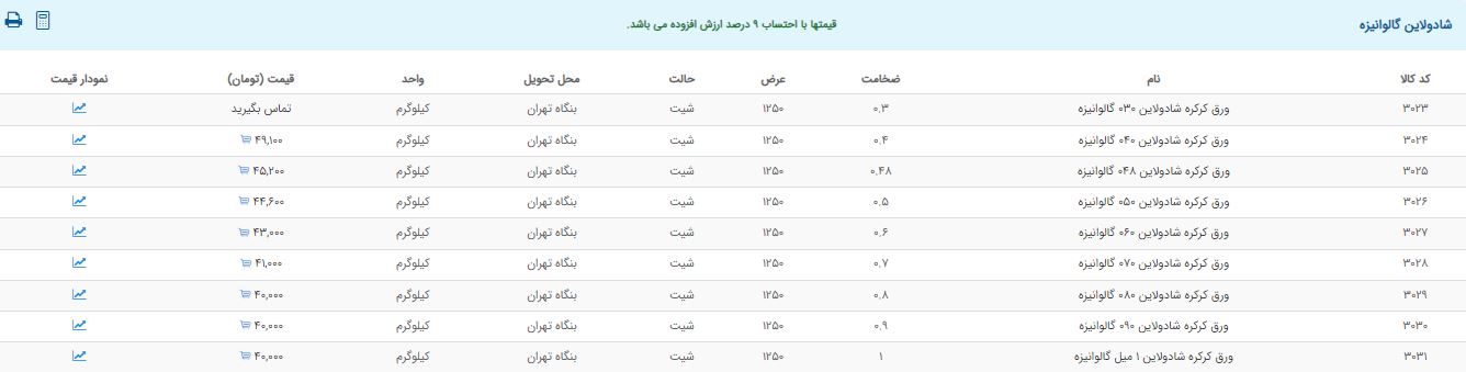 اعلام موجودی ورق گالوانیزه و رنگی