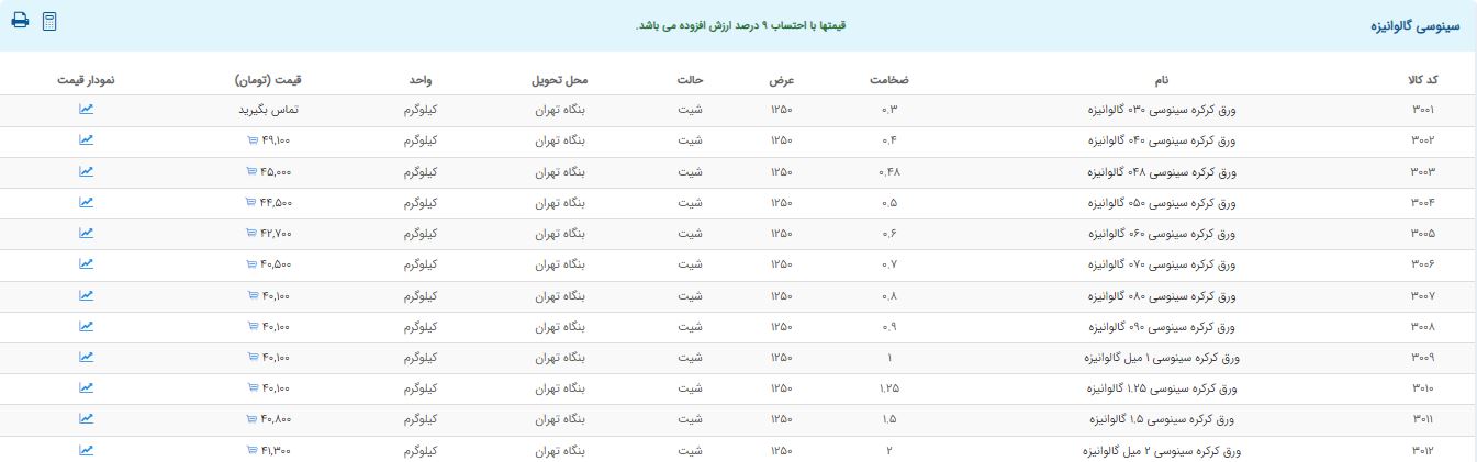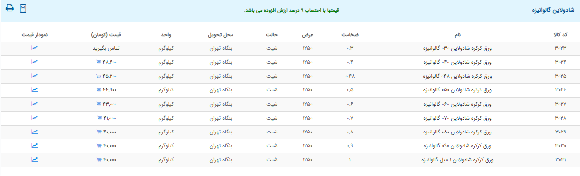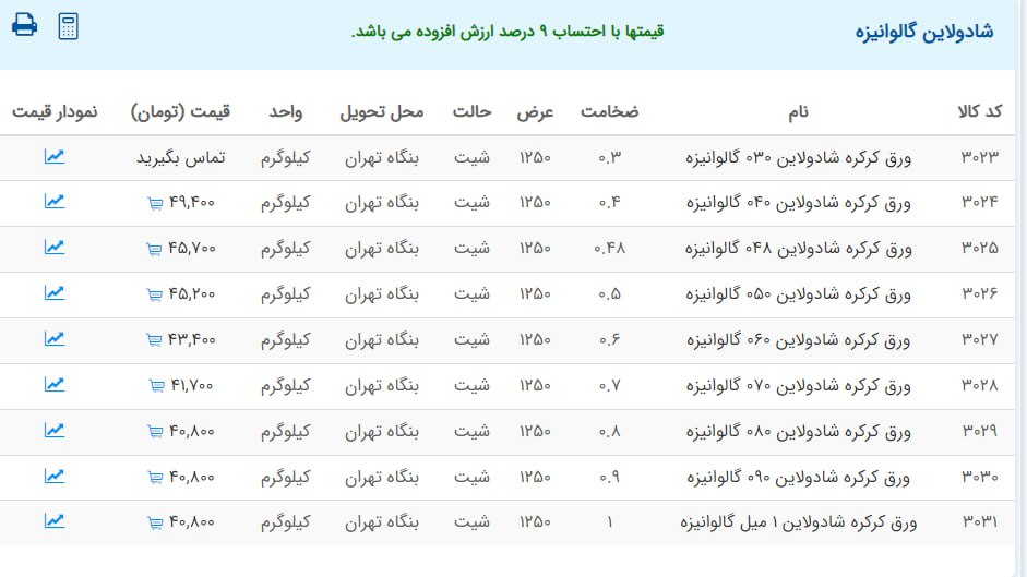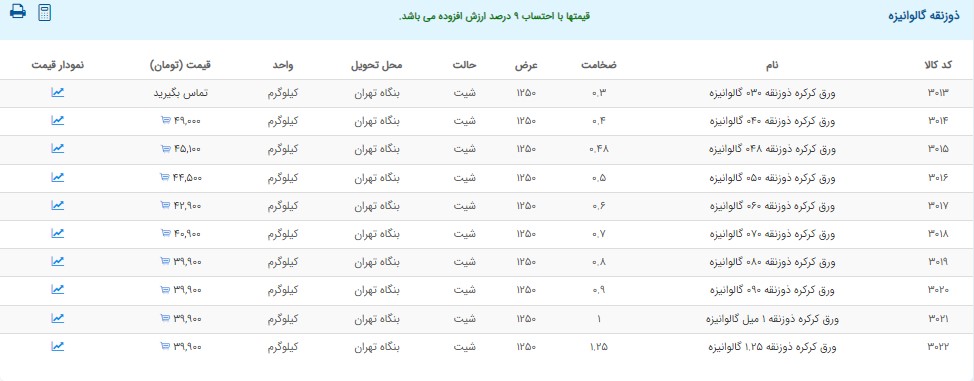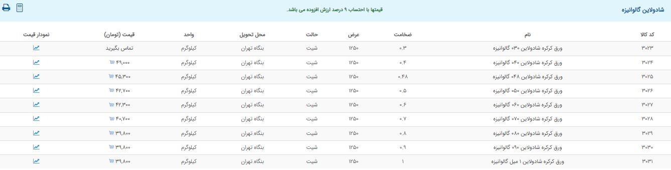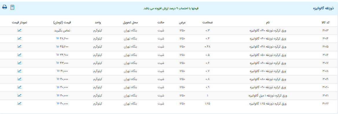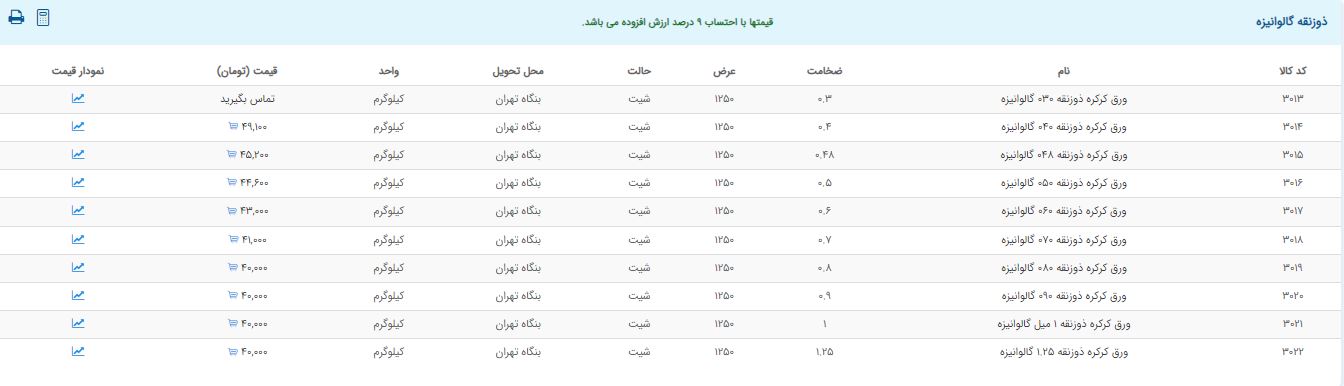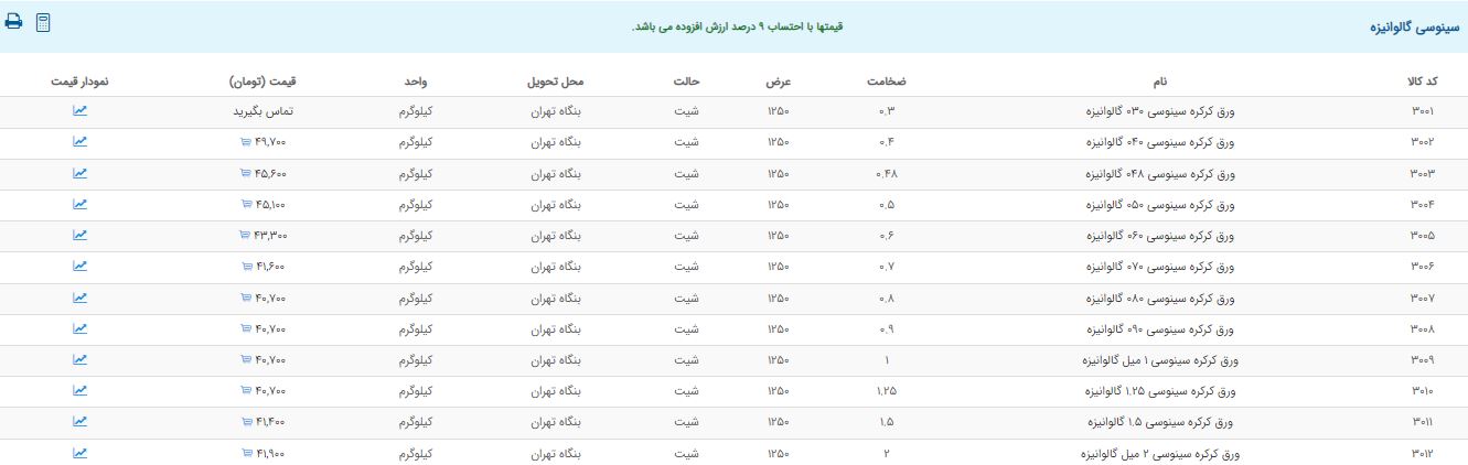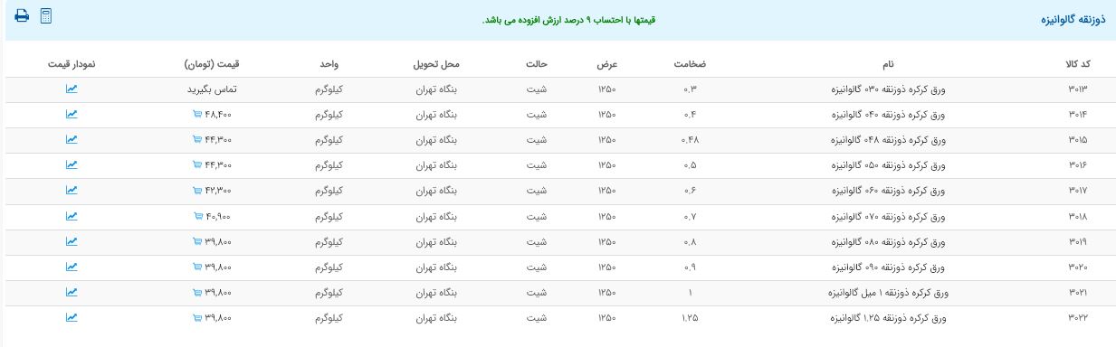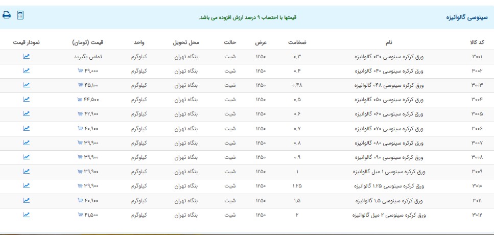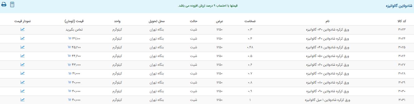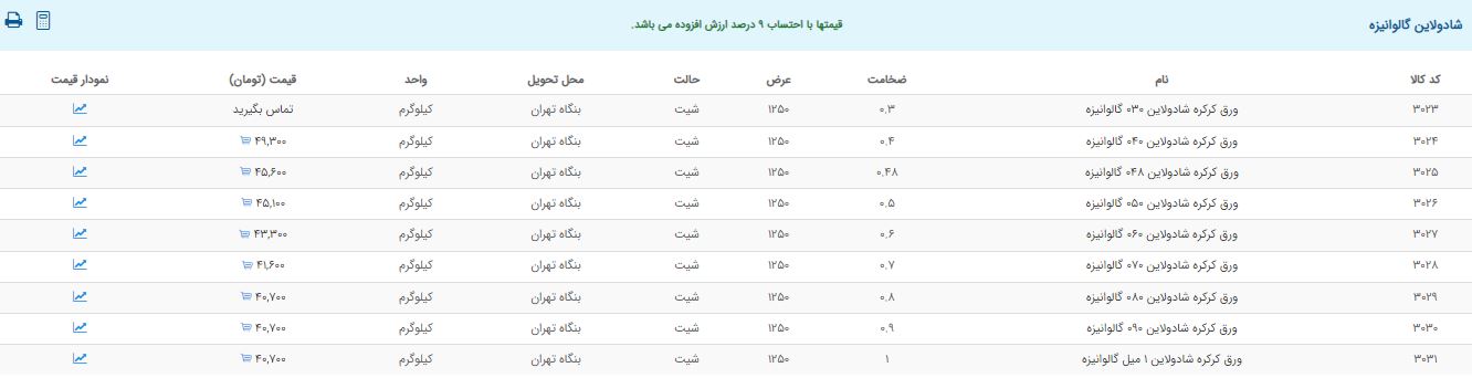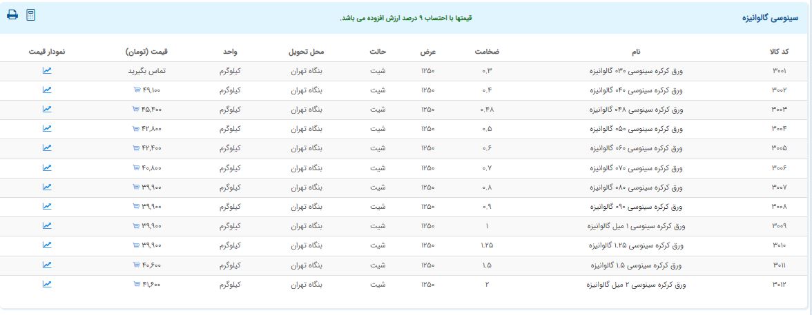 اعلام موجودی ورق گالوانیزه و رنگی