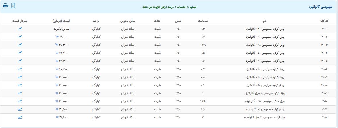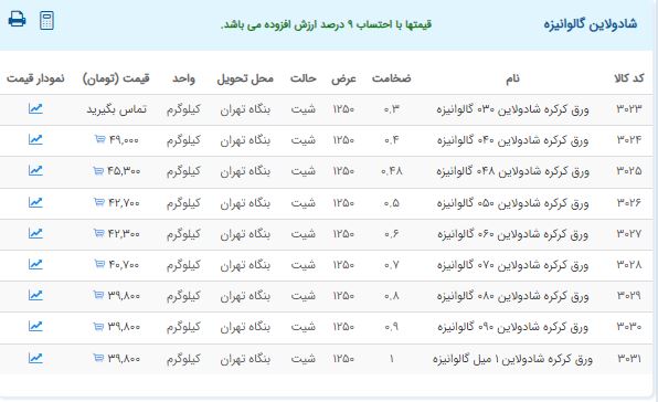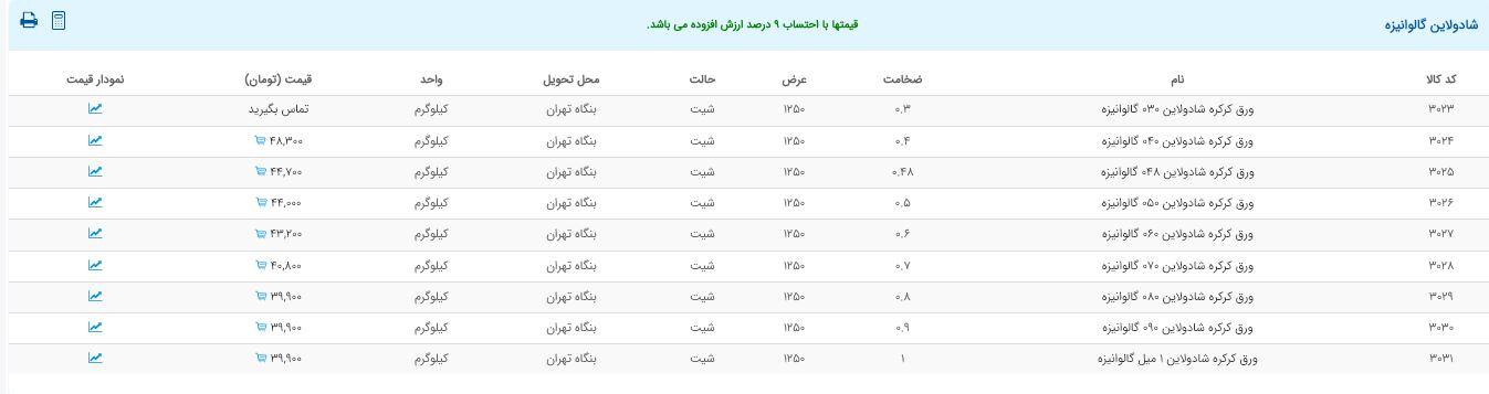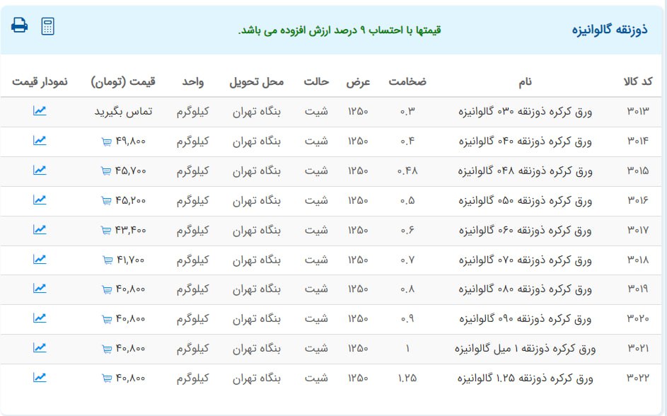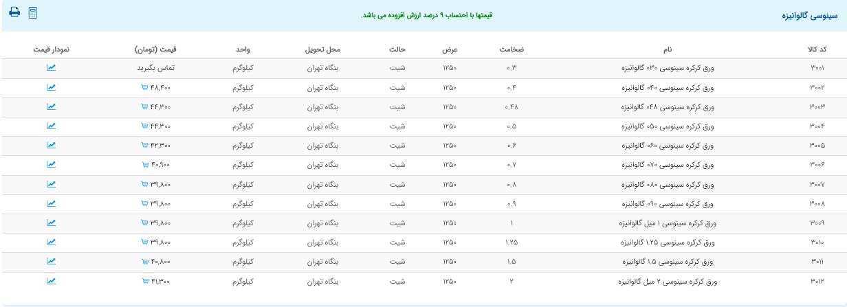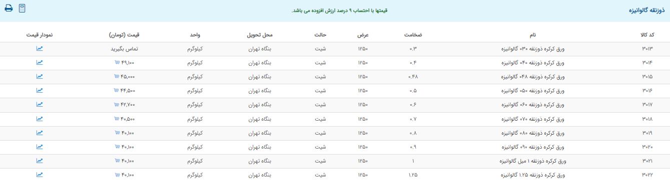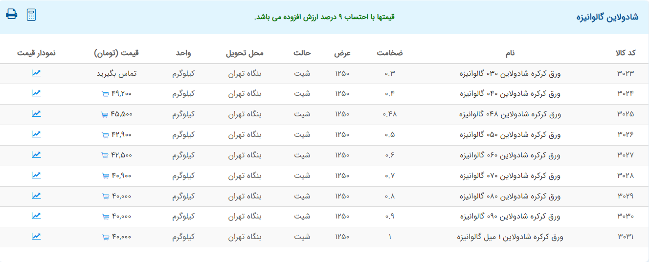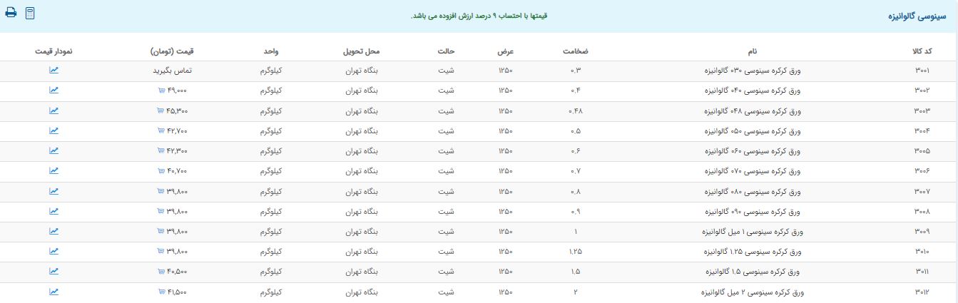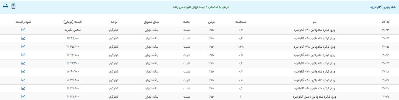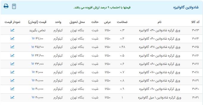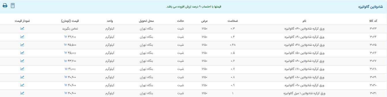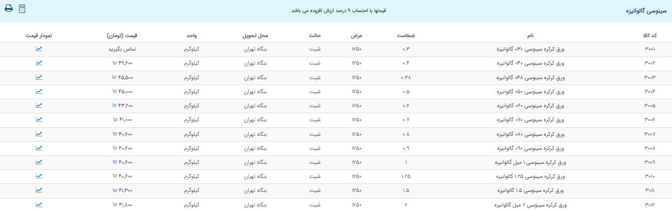 اعلام موجودی ورق گالوانیزه و رنگی