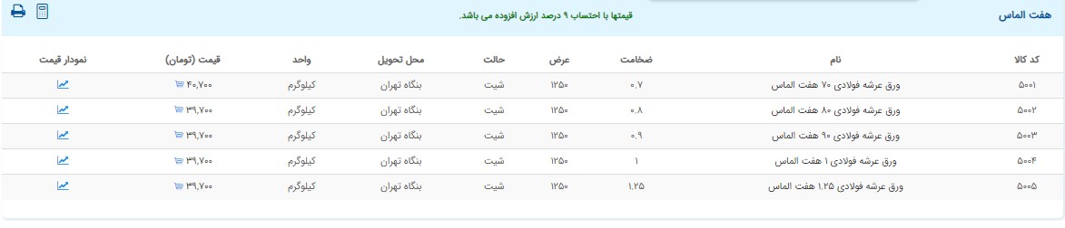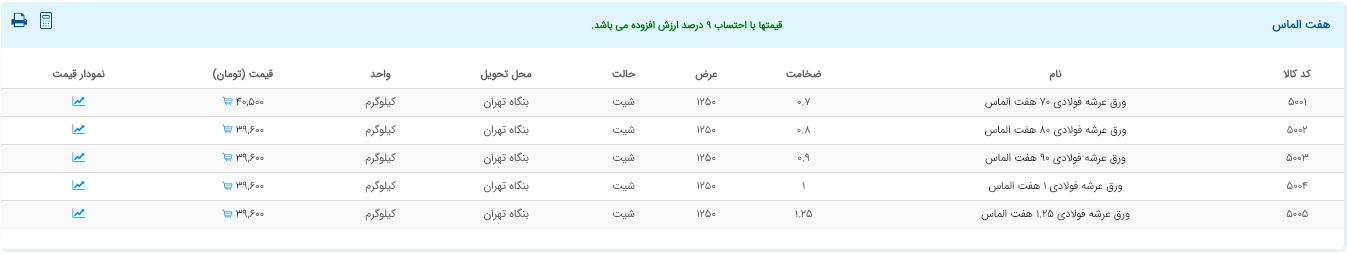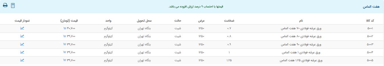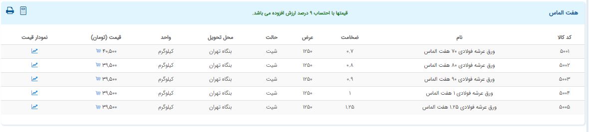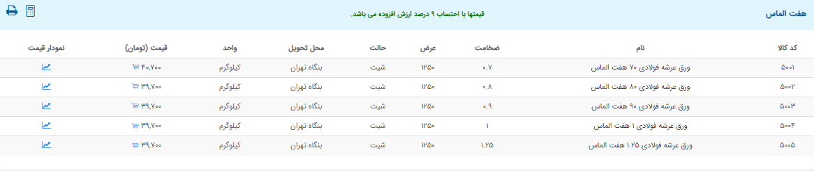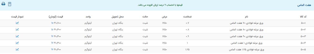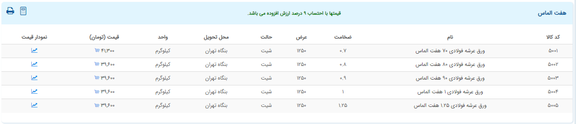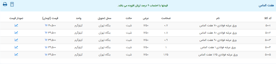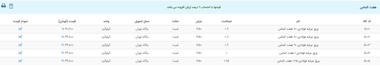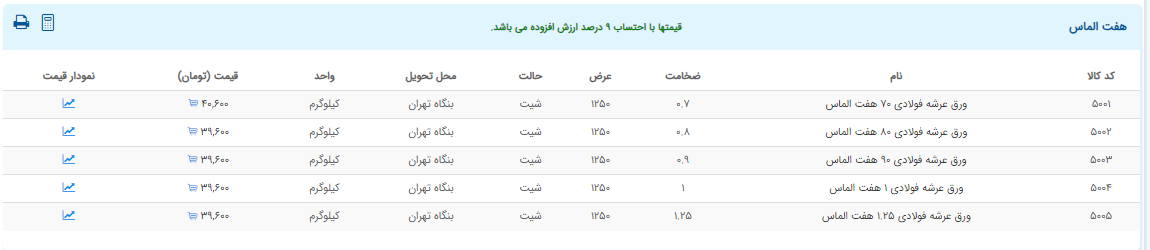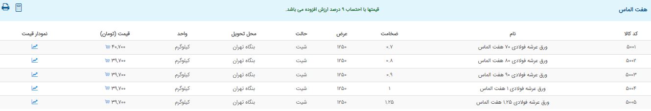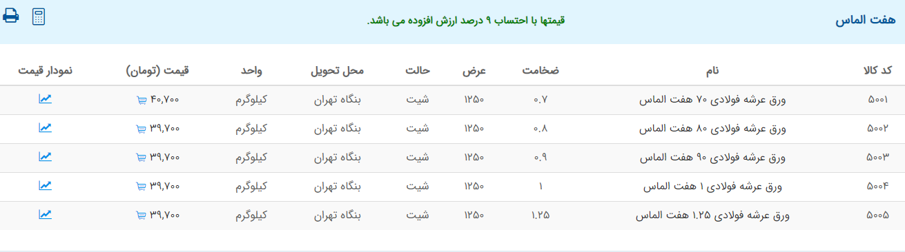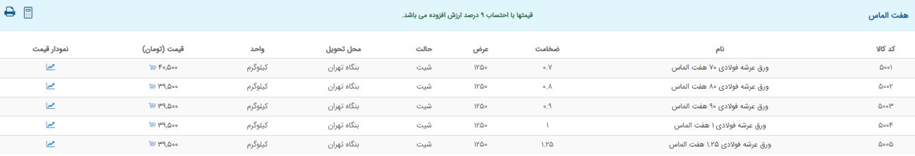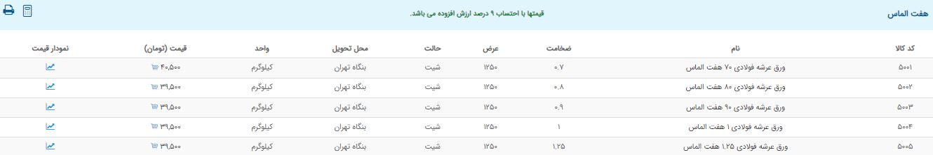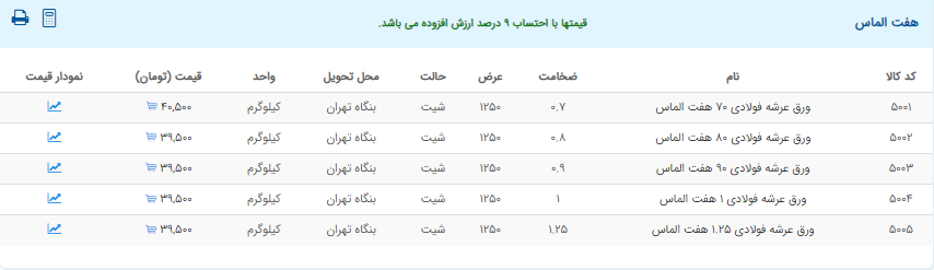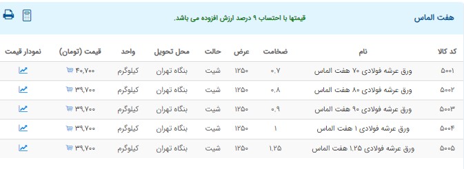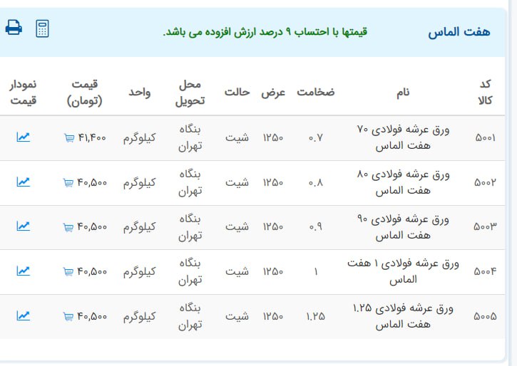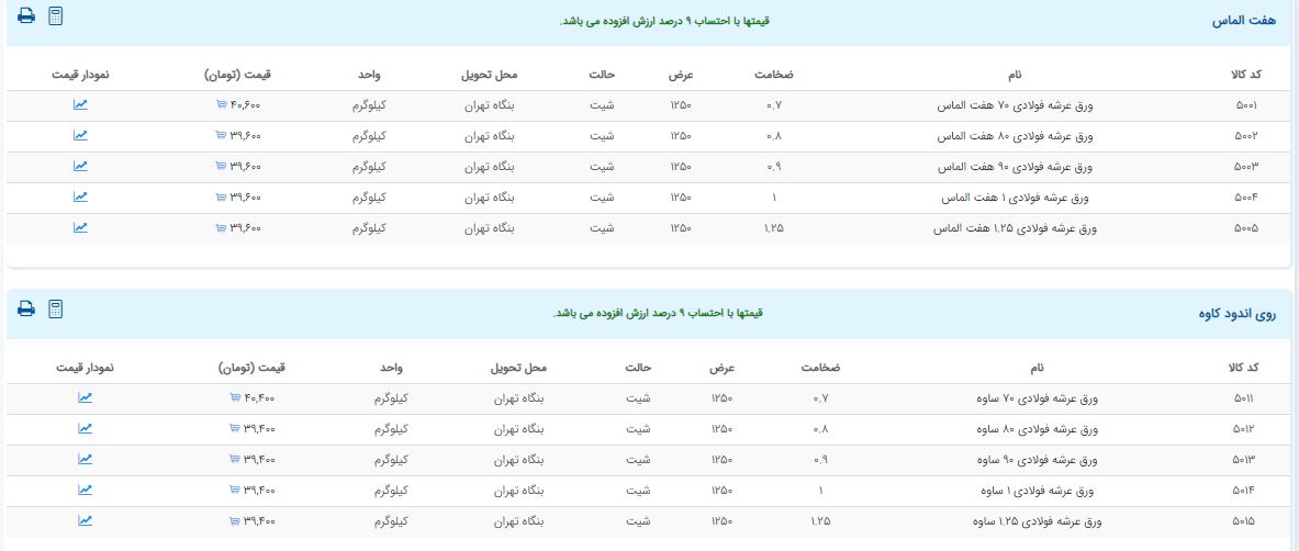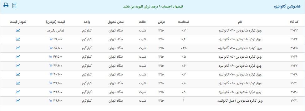 اعلام موجودی ورق گالوانیزه و رنگی