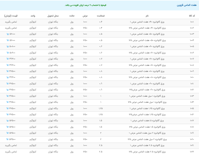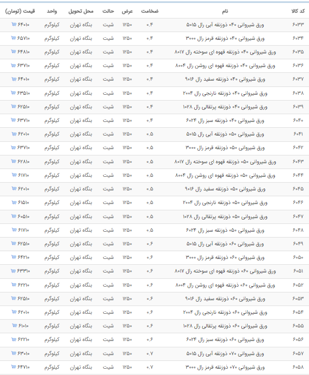 #فولاد_کبیر ليست روزانه ورق گالوانيزه و رنگي ——————————————- قيمتها جهت خريد بالاي 5تن ميباشد زير 5 تن توافقي است. ——————————————- ✅انواع طرح سفال شيرواني ✅عر ...