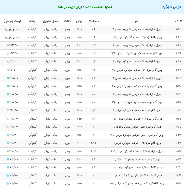 [ ——————————————- ليست روزانه ورق گالوانيزه و رنگي ——————————————- قيمتها جهت خريد بالاي 5تن ميباشد زير 5 تن توافقي است. ——————————————- ✅انواع طرح سفال شيروان ...