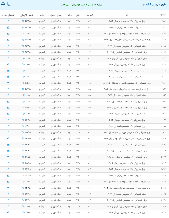 #فولاد_کبیر ليست روزانه ورق گالوانیزه ورنگی ——————————————- قيمتها جهت خريد بالاي 5تن ميباشد زير 5 تن توافقي است. ——————————————- ✅انواع طرح سفال شيرواني ✅عر ...