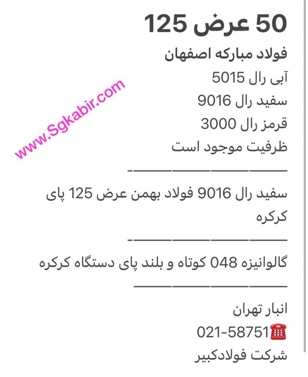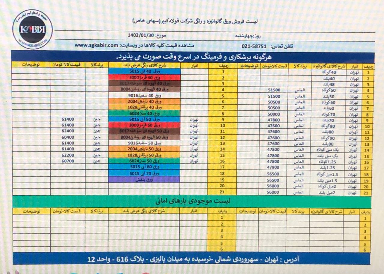 [ Album ] —————————————— #فولاد_کبیر ليست روزانه ورق گالوانيزه و رنگي ——————————————- قيمتها جهت خريد بالاي 5تن ميباشد زير 5 تن توافقي است. ——————————————- ✅ان ...