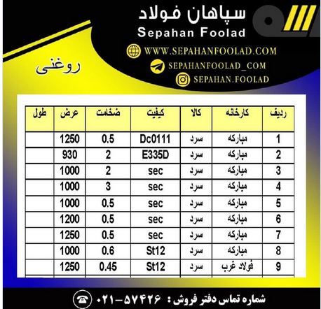 🟡⚫️شرکت سپاهان فولاد ⚫️🟡 ♦️موجودی کویل سرد درجه یک♦️ کویل سرد 0.5*1250* DC01 سه رول کویل سرد 0.6*1320*DC01 تک رول کویل سرد 2*930 *E335D تک رول ...
