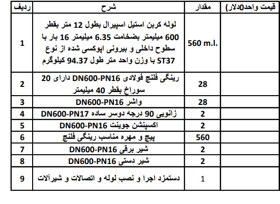 خریدار لوله کربن استیل اسپیرال بطول 12 متر بقطر 600 میلیمتر بضخامت 35.6 میلیمتر 16 بار با سطوح داخلی و بیرونی اپوکسی شده از نوع ST37 با وزن واحد متر طول 37.94 ک ...