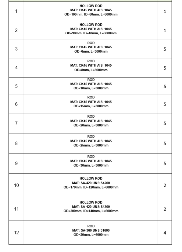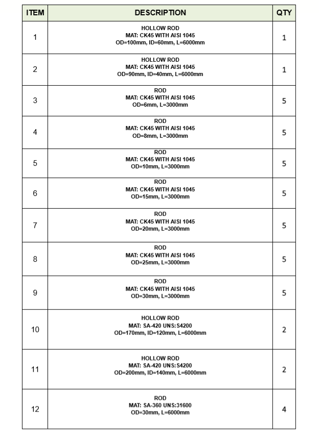 خریدار شرکت پترو فرایند انواع لوله گالوانیزه انواع لوله آلیاژی و ck45 مقدار : تناژ اقلام مورد نیاز پیوست عکس می باشد.