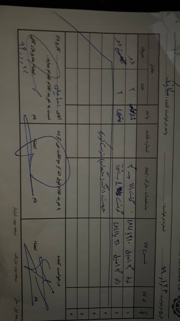 درخواست خرید تولیدات و مصنوعات فلزی - RFQ-26645